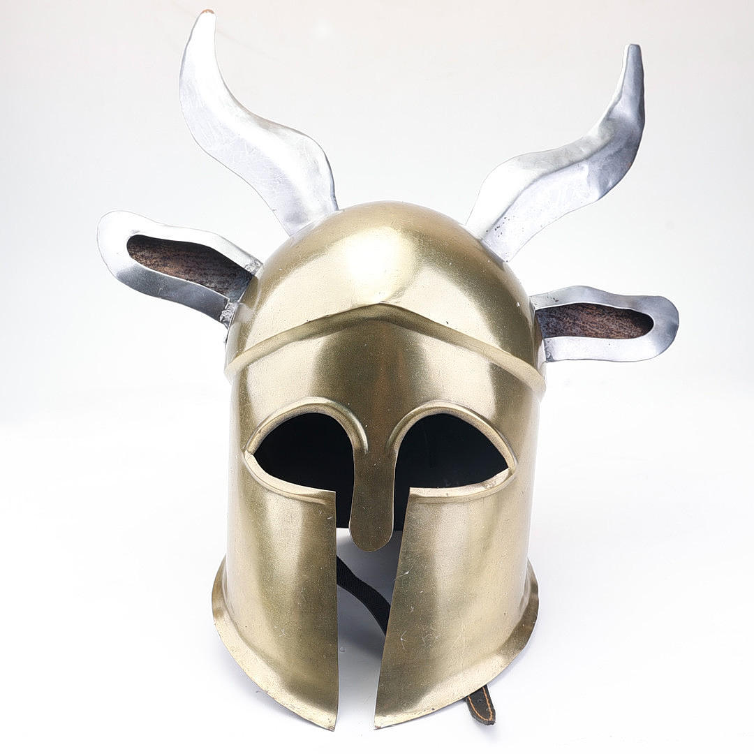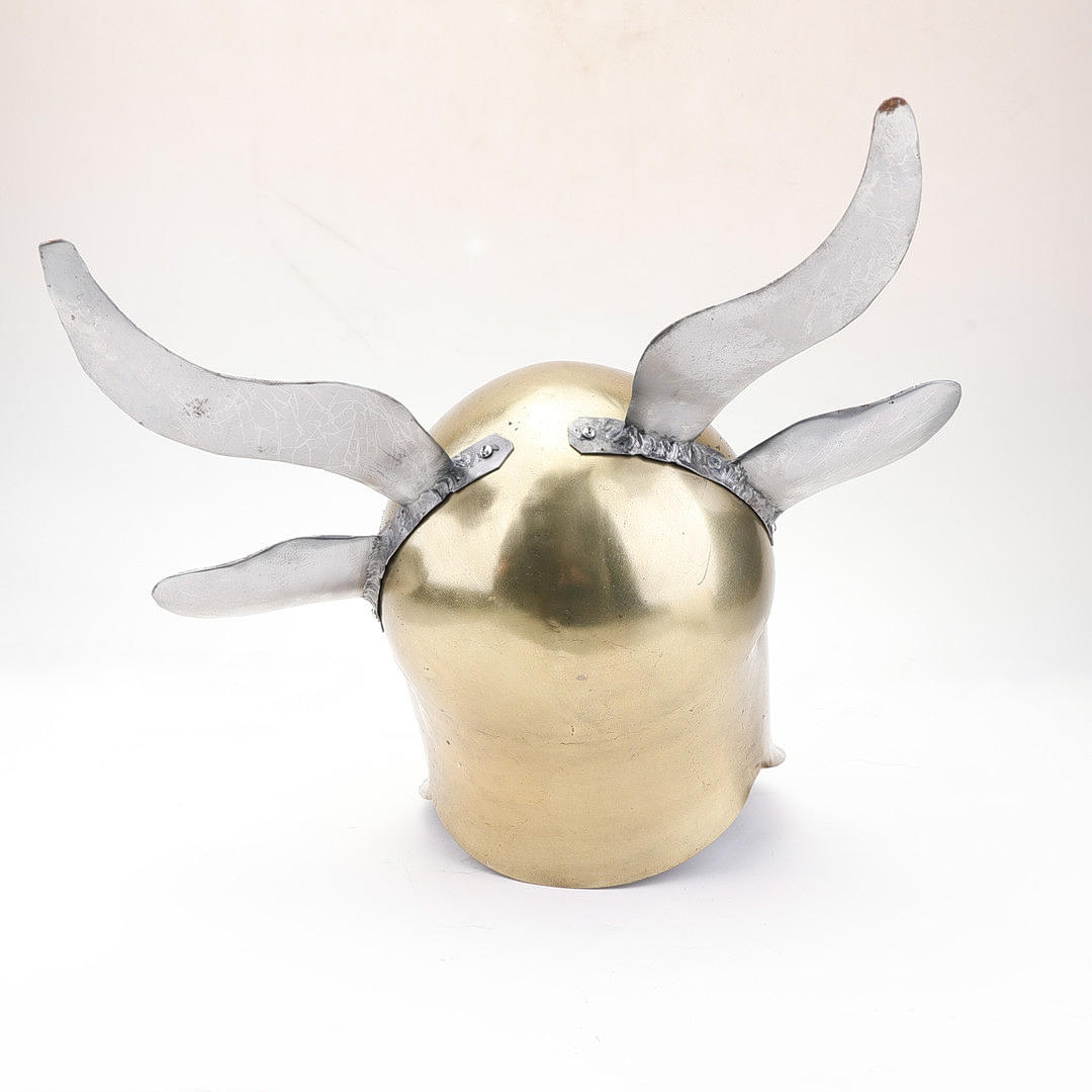 4342981. HJELM. Med horn, metal, moderne replika.
