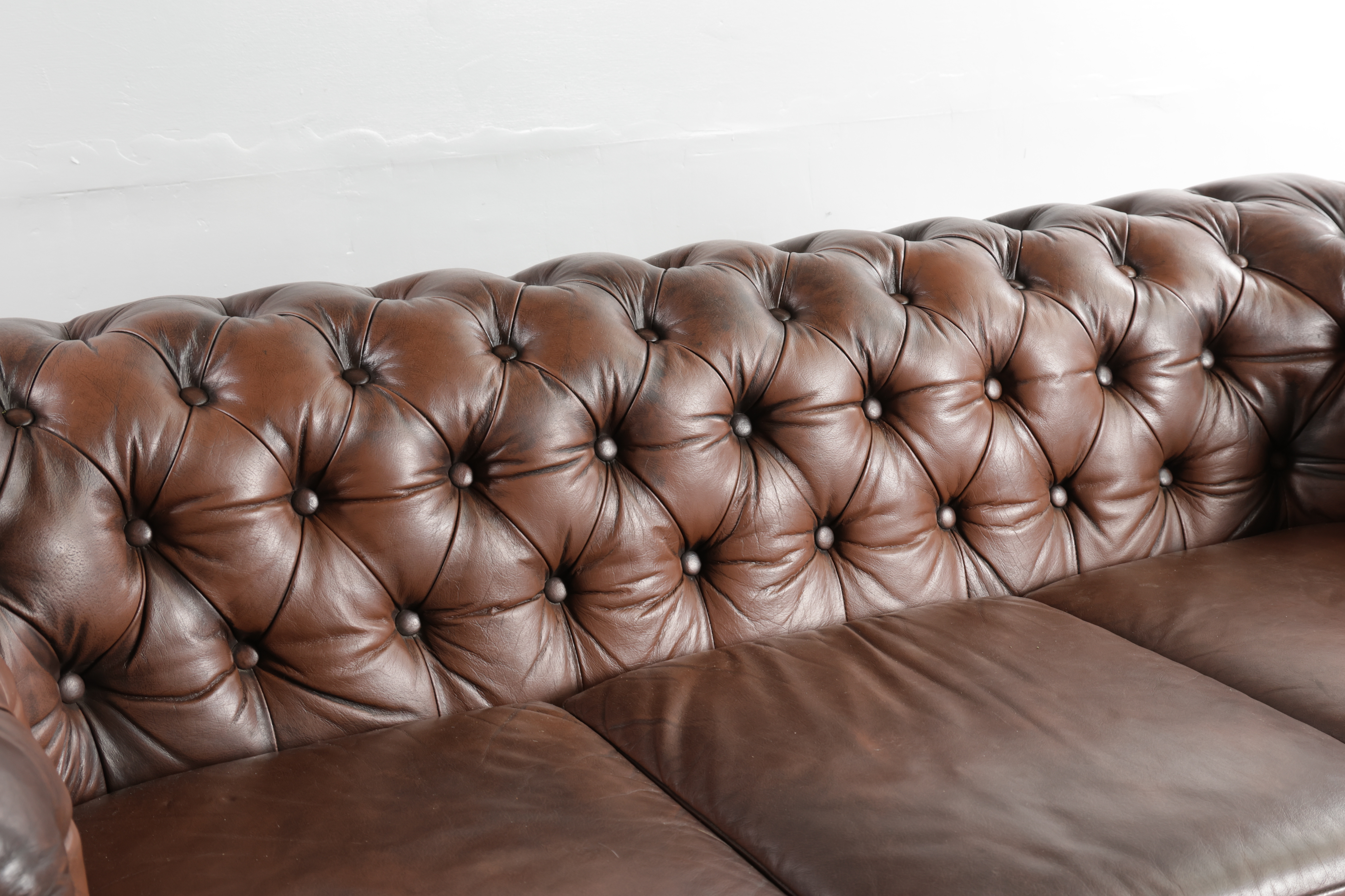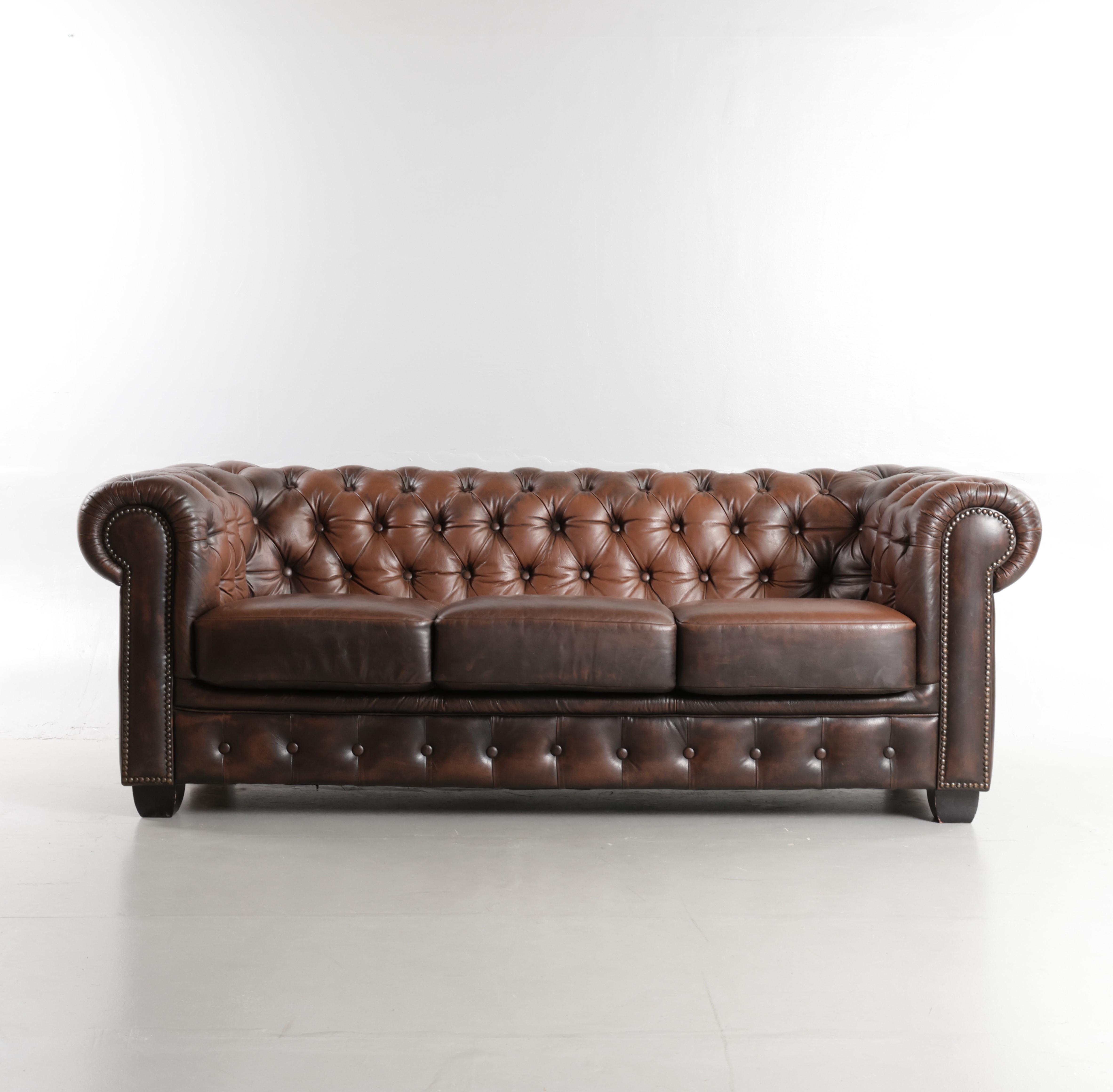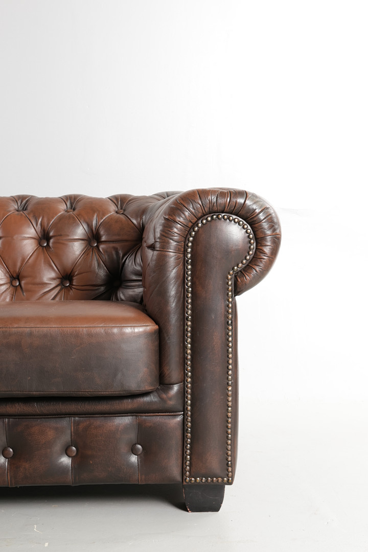 4343367. Tre-pers. sofa, dybthæftet læder - Chesterfield-stil.