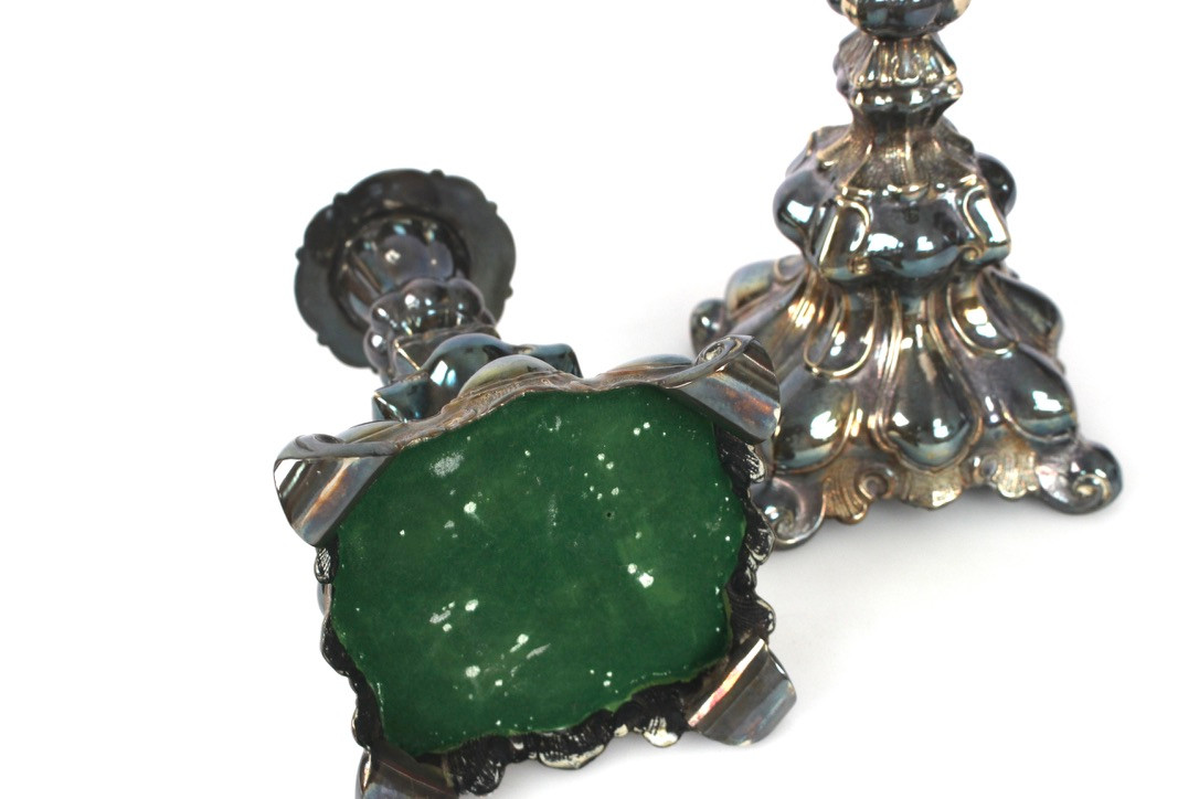 4343400. Et par lysestager af sølv.