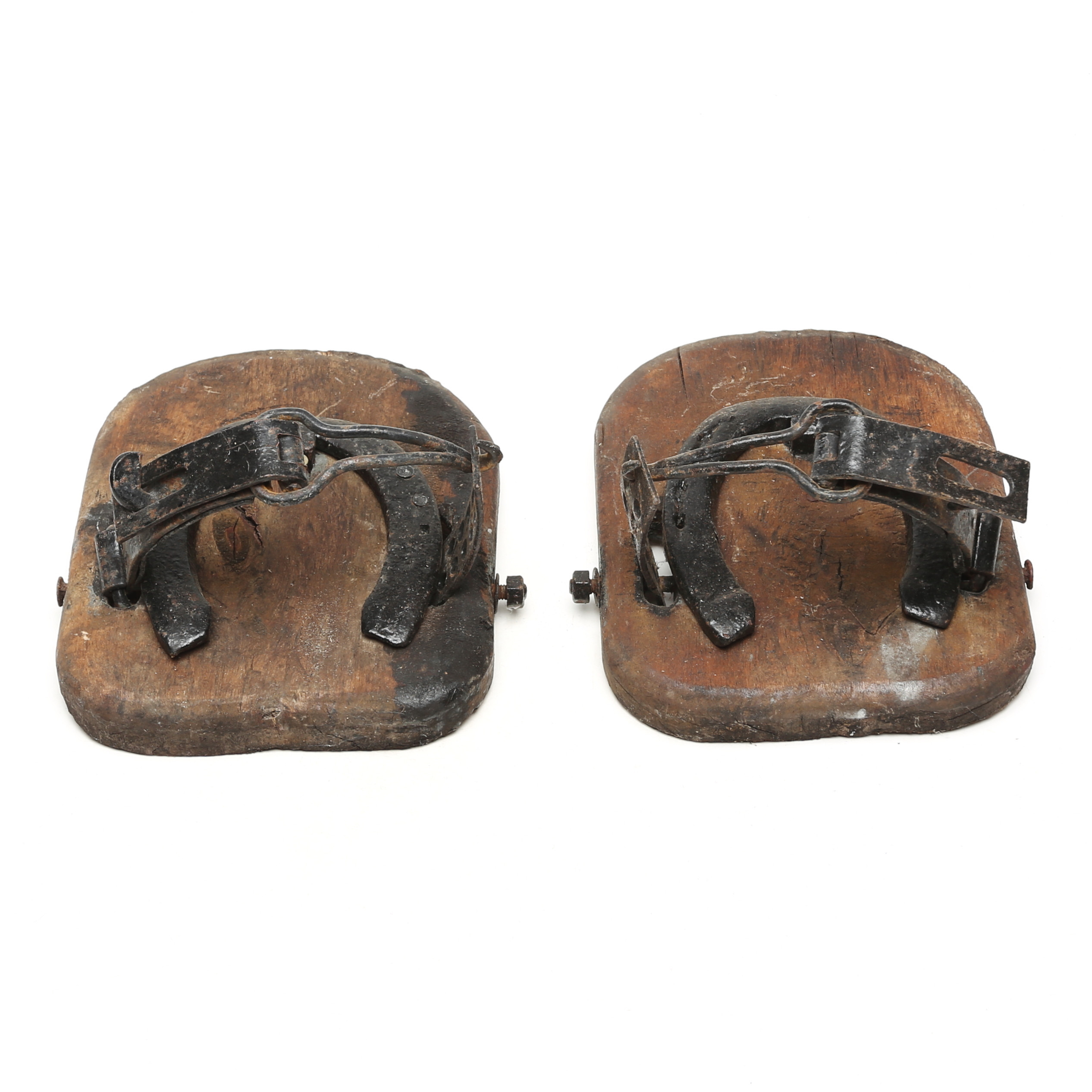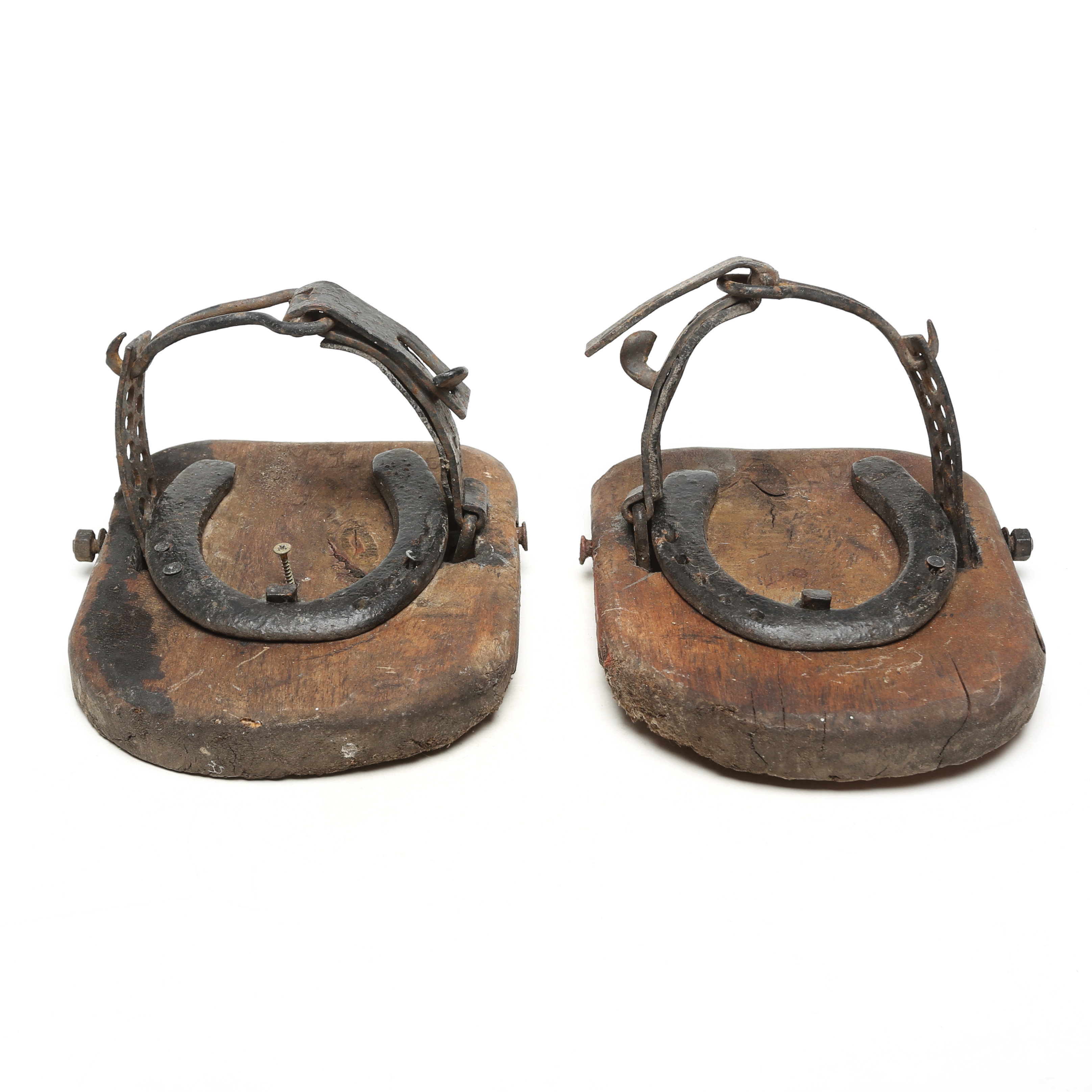 4343943. Et par hestesko, træ/metal, til sankmark.