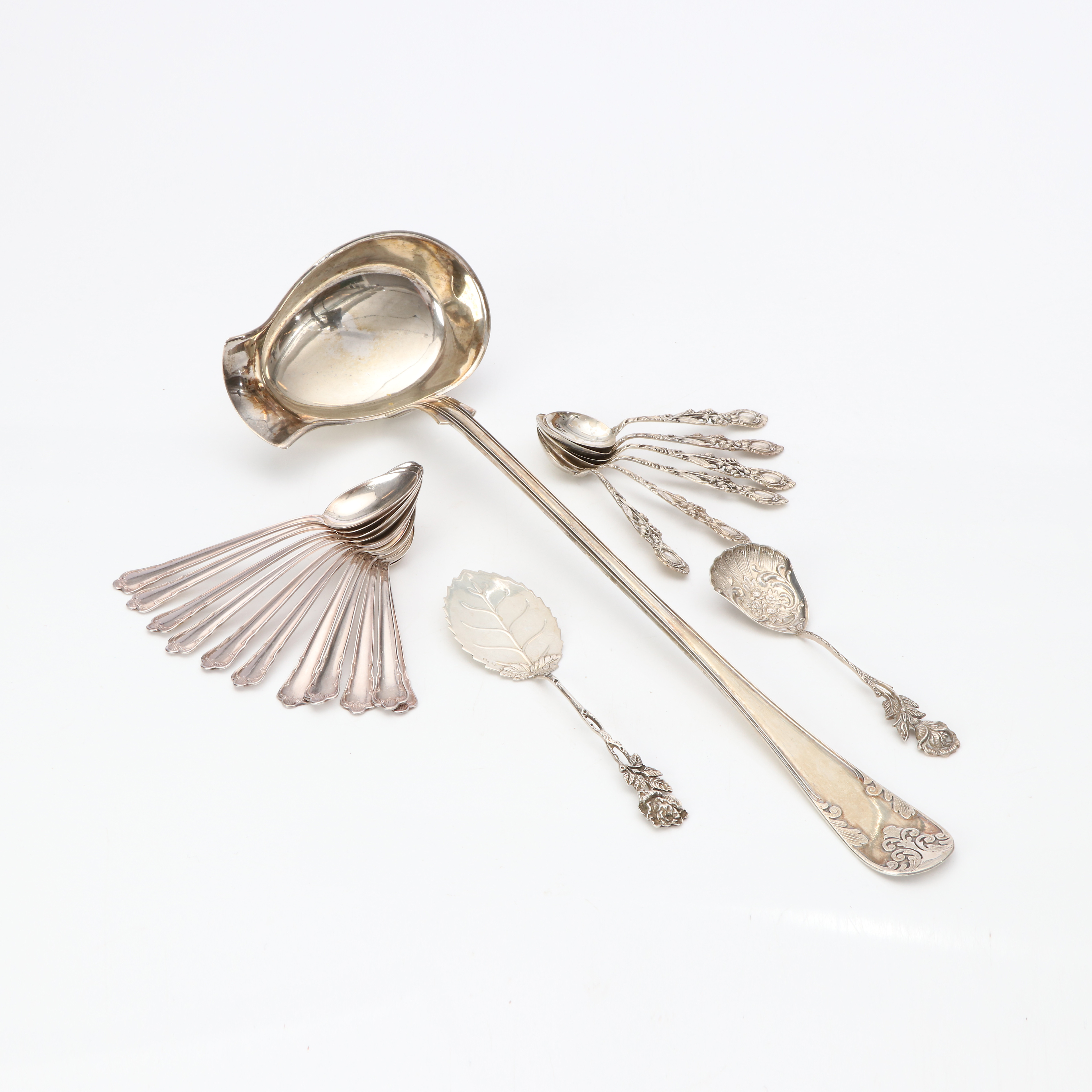 4344409. PARTI SØLV, 20 STK. Vægt ca. 430 gram.