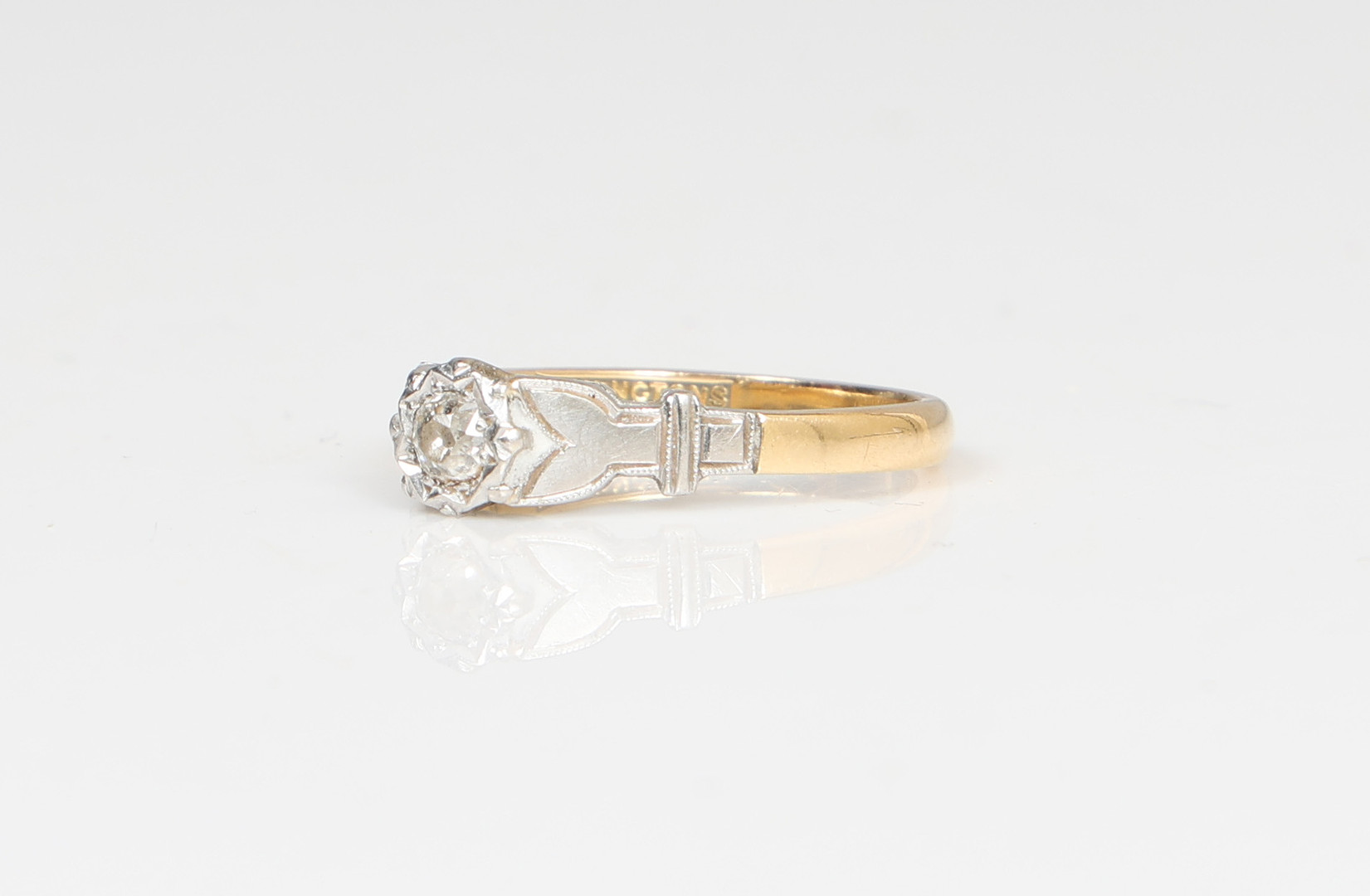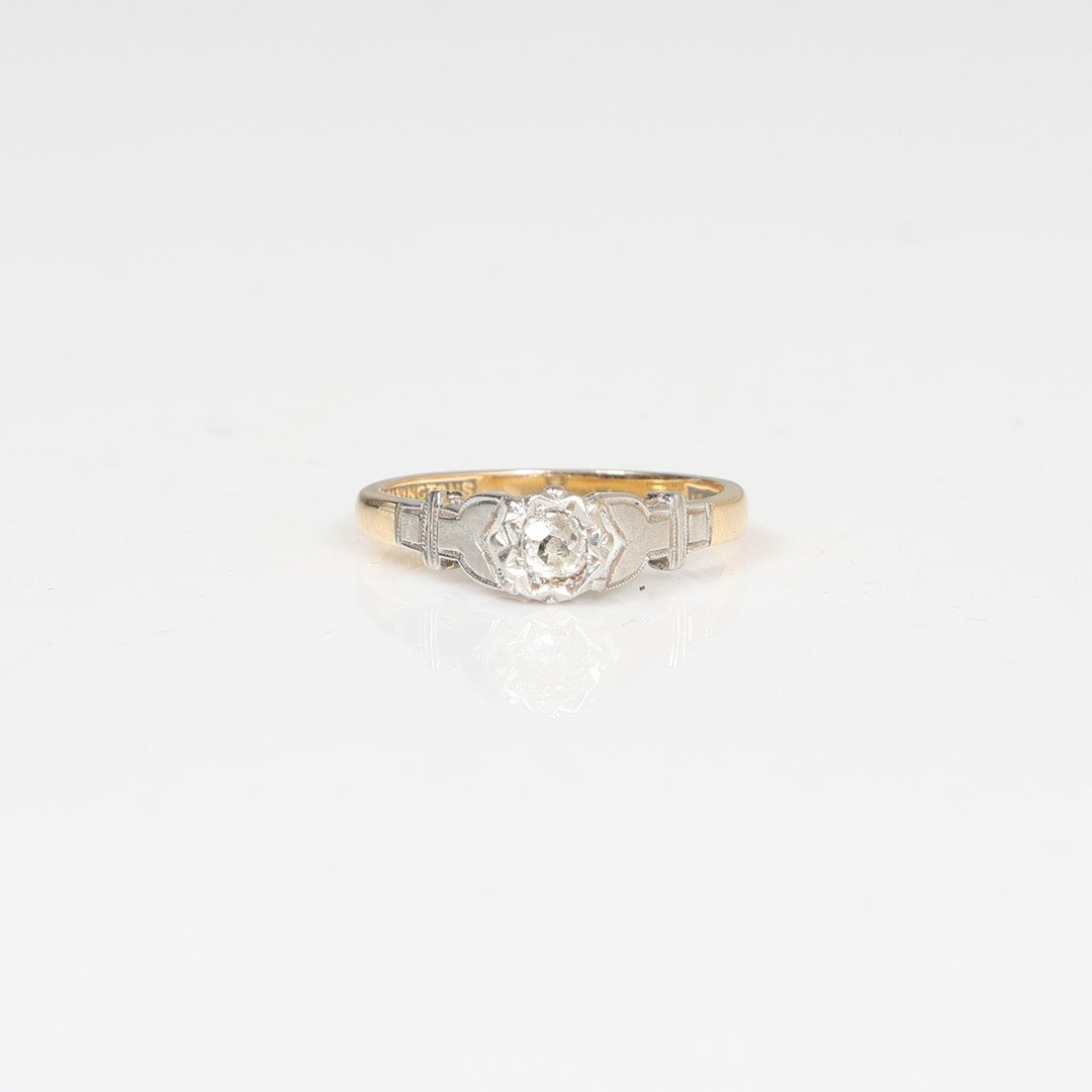 4344497. EN 18 KARAT GULD ENKELT DIAMANT SÆT RING.