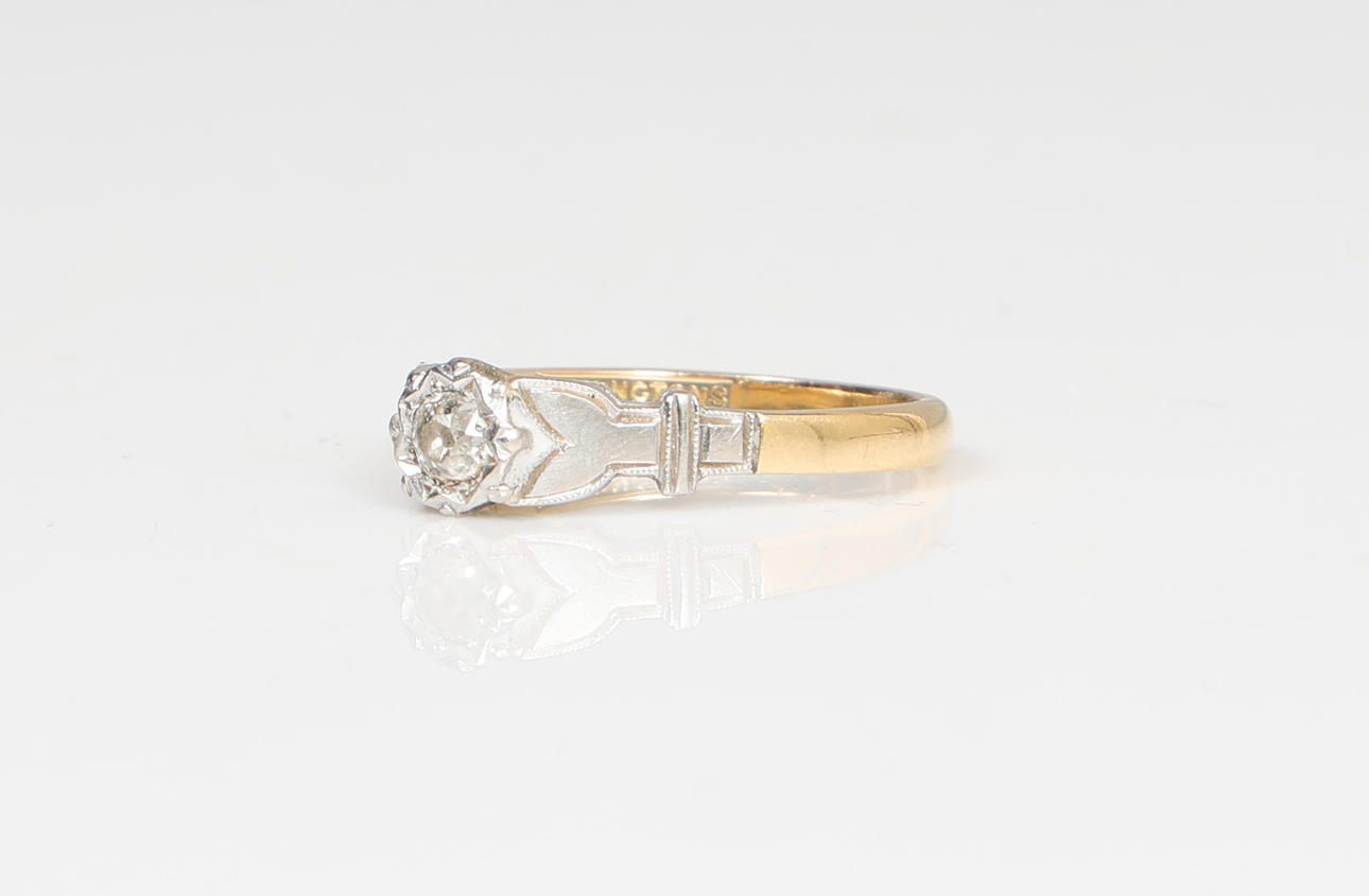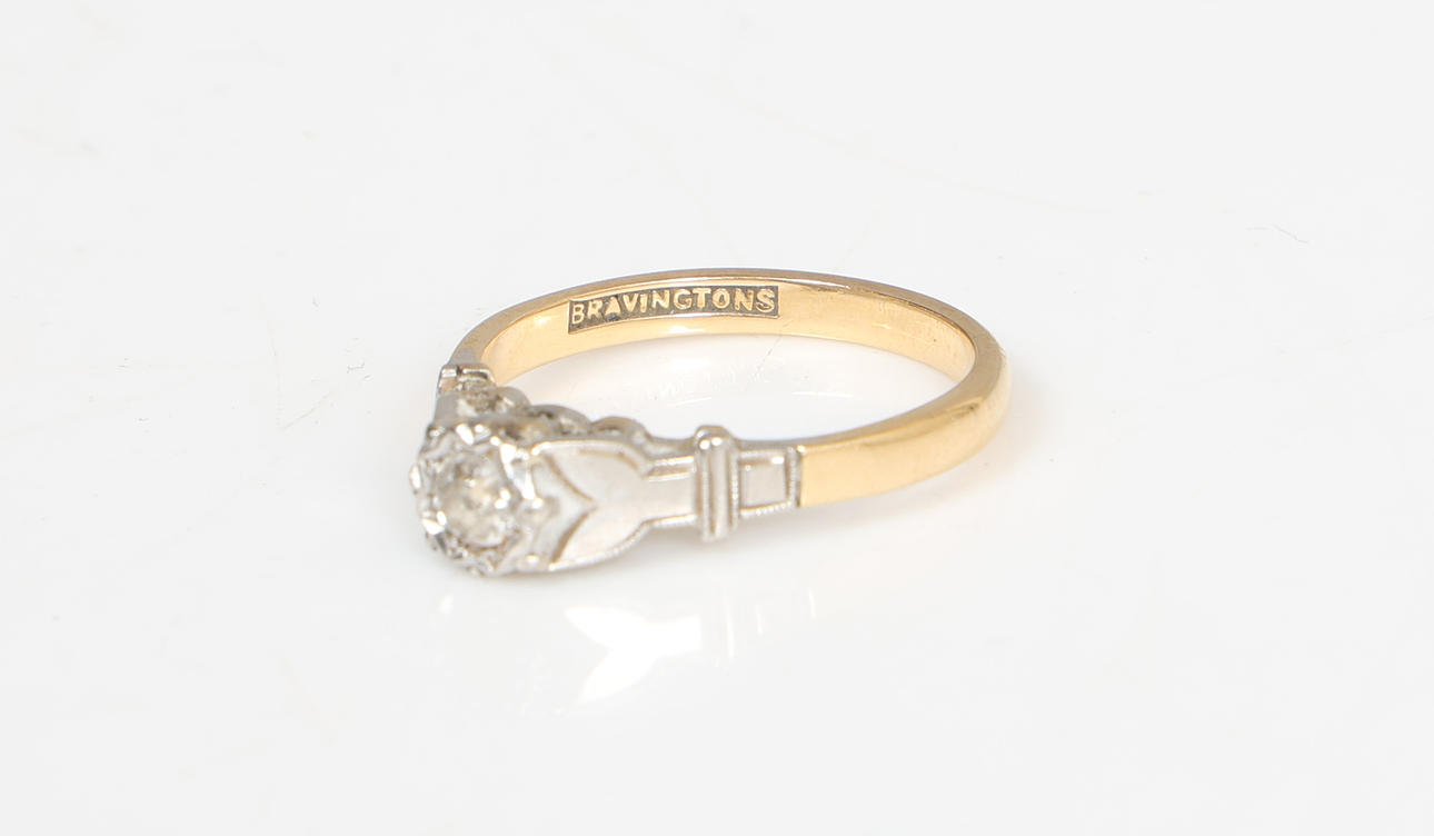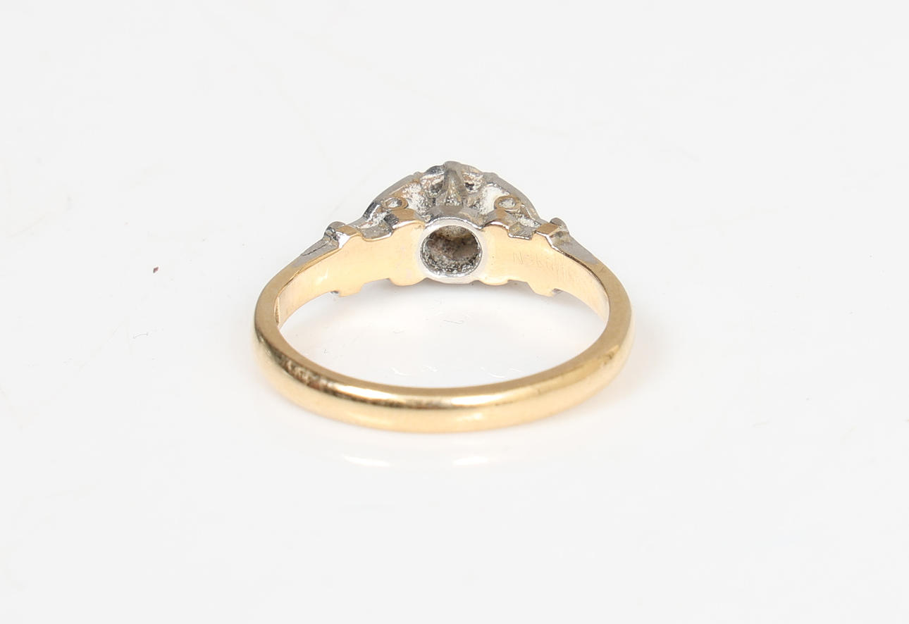 EN 18 KARAT GULD ENKELT DIAMANT SÆT RING.