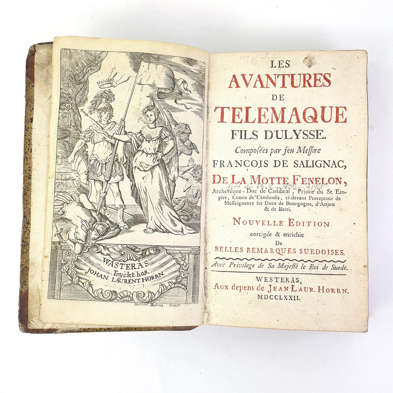 * „Les Avantures de Telemaque fils d'ulysse“, François de Salignac.Trykt af Johan Laurent Horrn, Westerås, 1722.