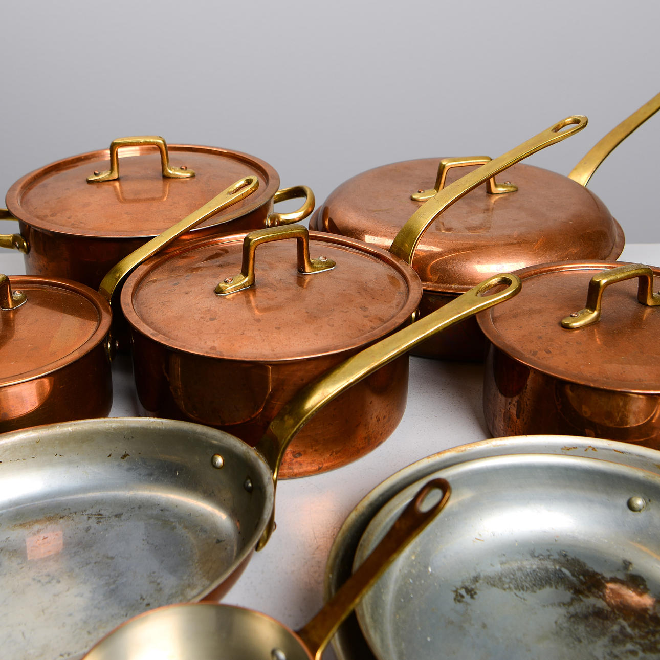 4346947. KRÖGARHUSET, traktorpander & pander, 9 stk, kobber.