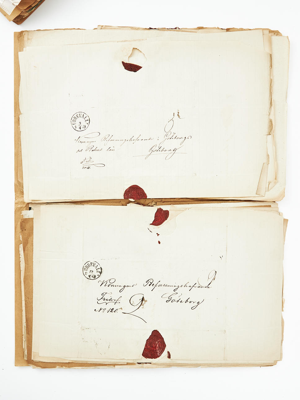 SAMLING AF KONVOLUTTER OG BREVE. Konvolutter rettet til offentlige myndigheder, hovedsageligt i Göteborg. Midt i det 19. århundrede.