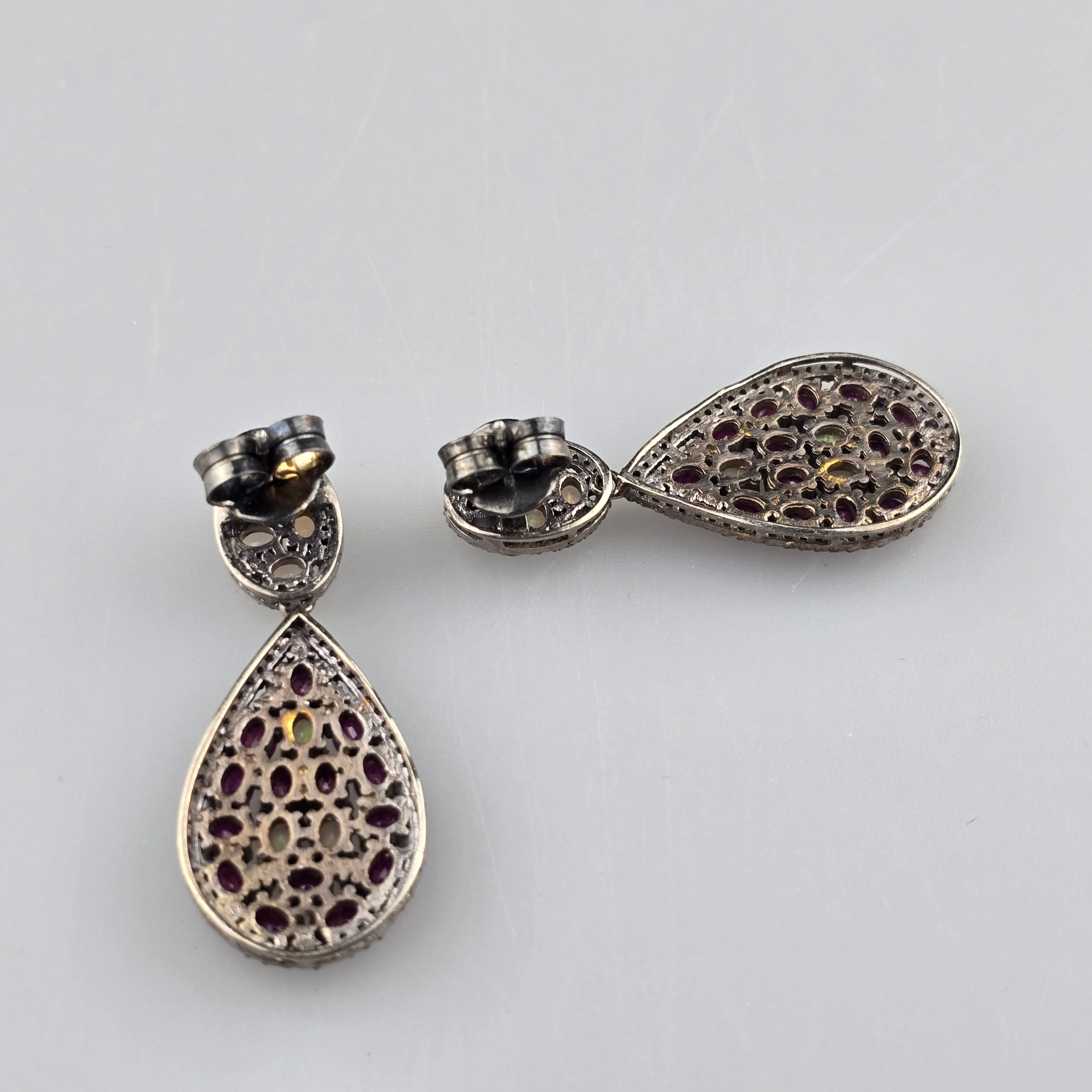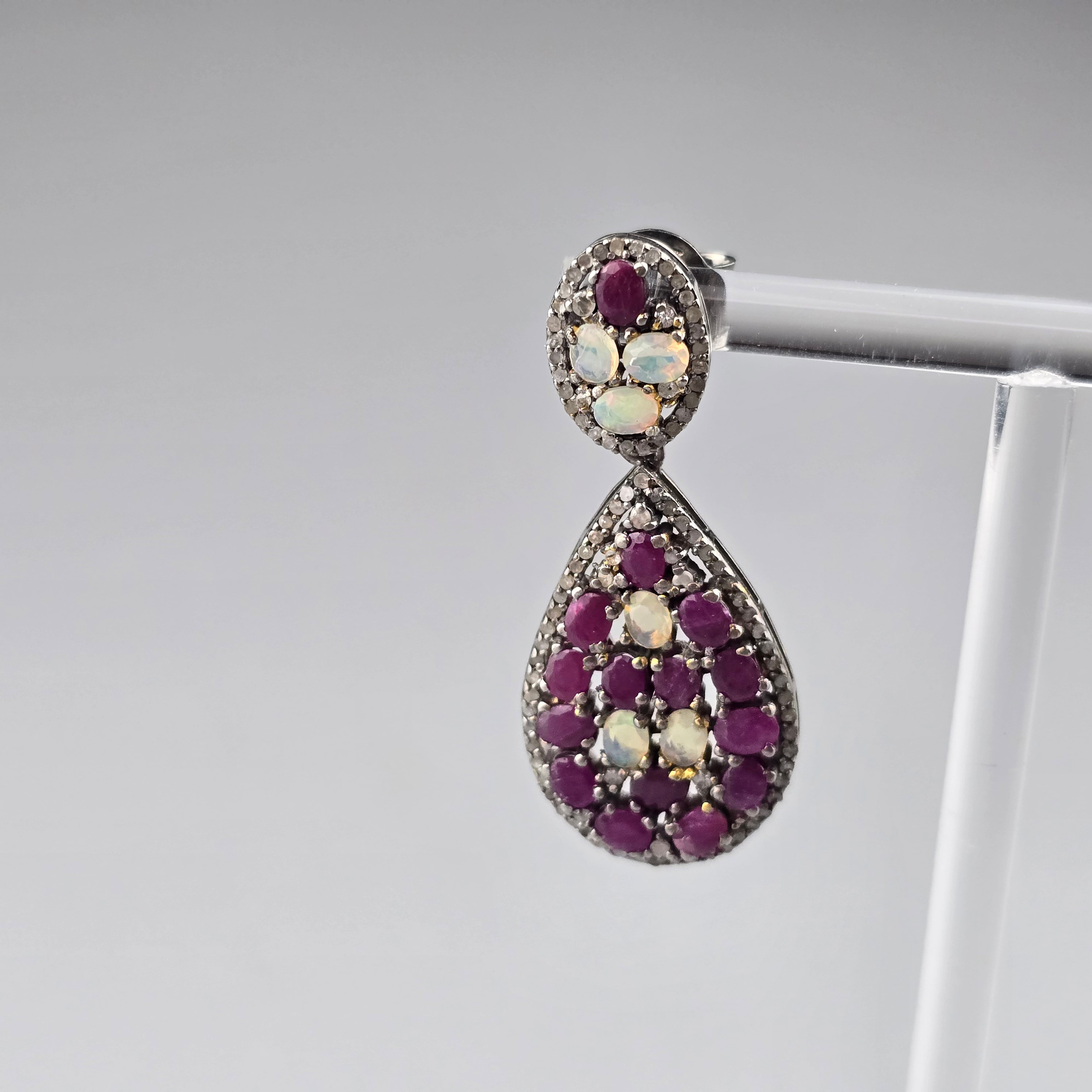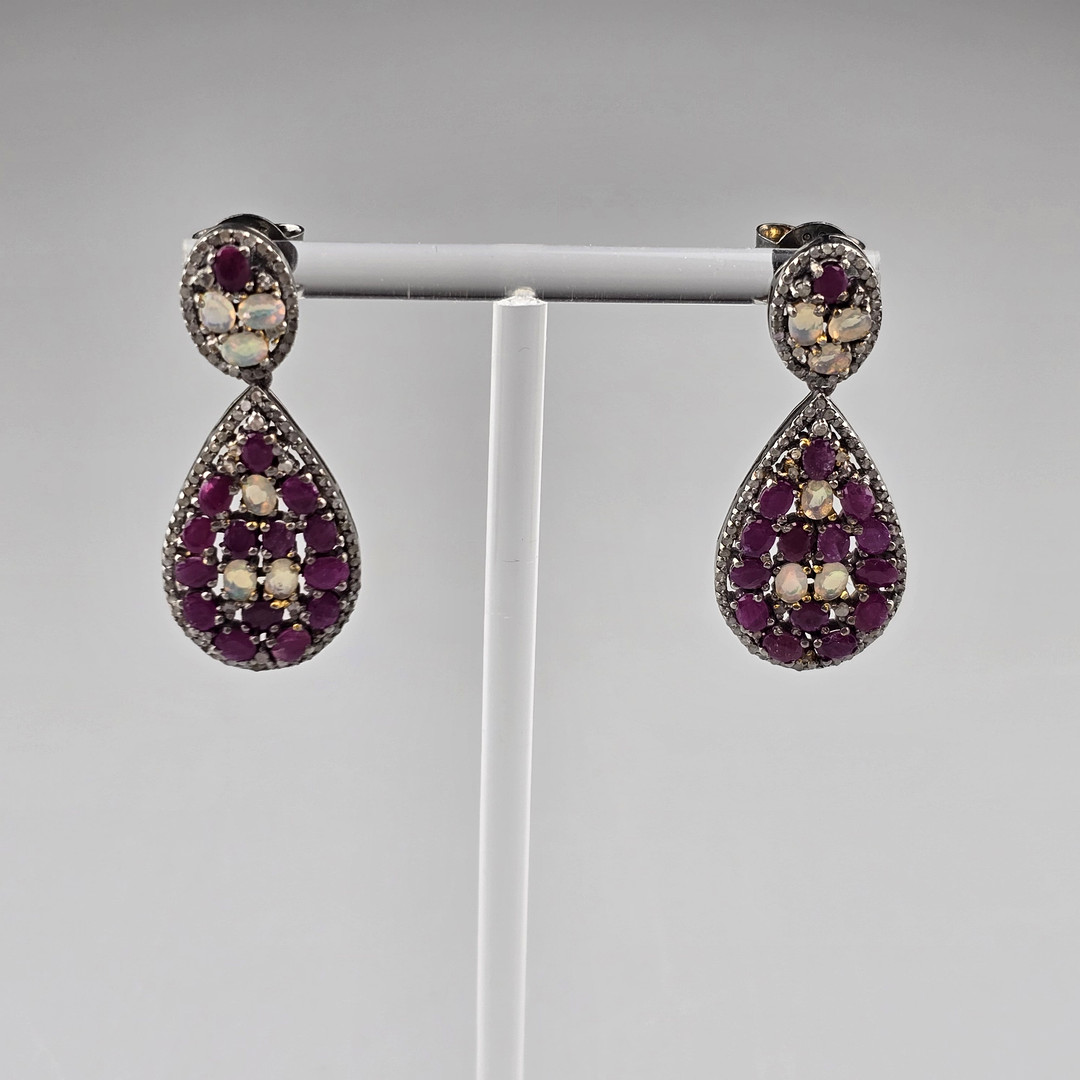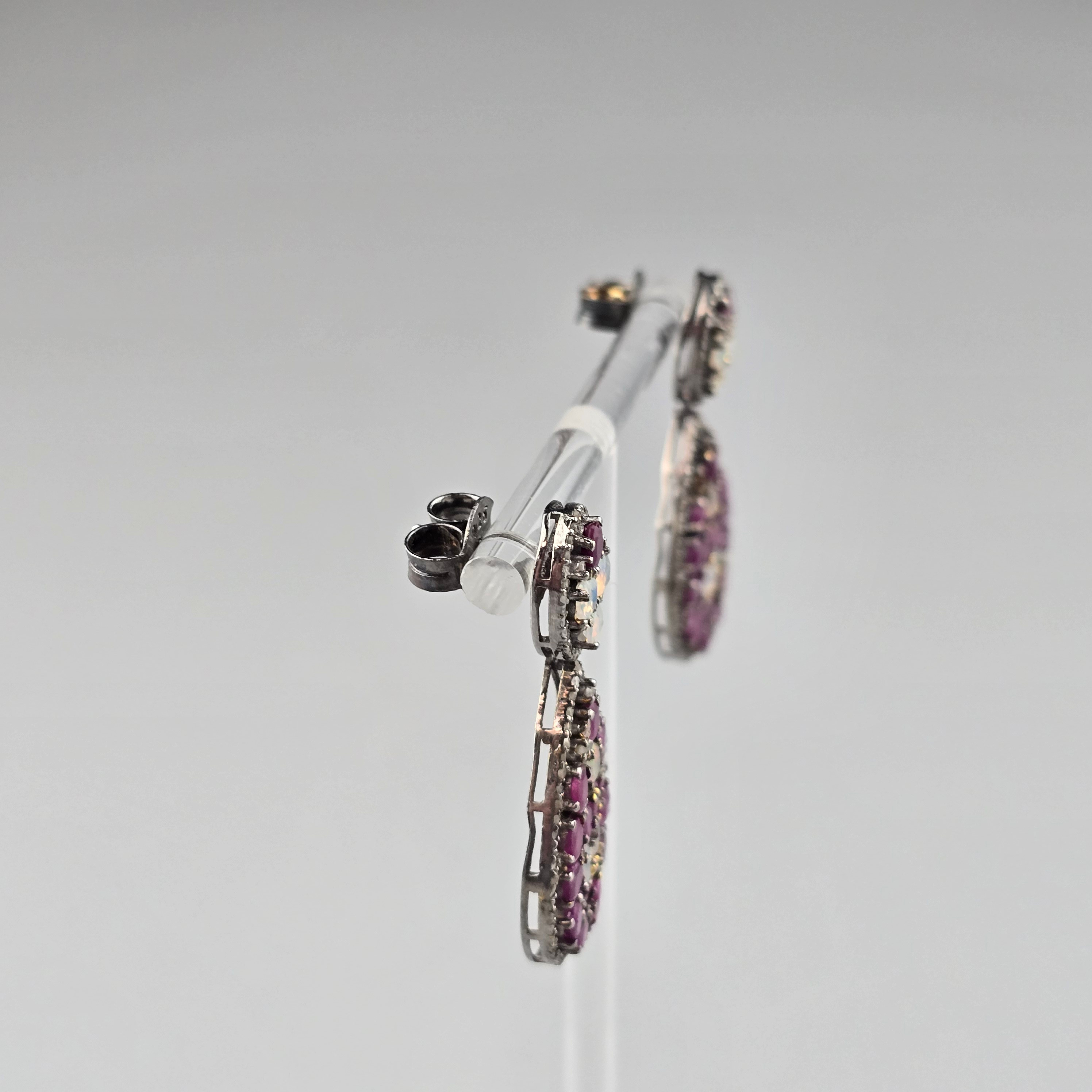 4347506. Ruby Gemstone Dangler 925 sølv diamant øreringe.