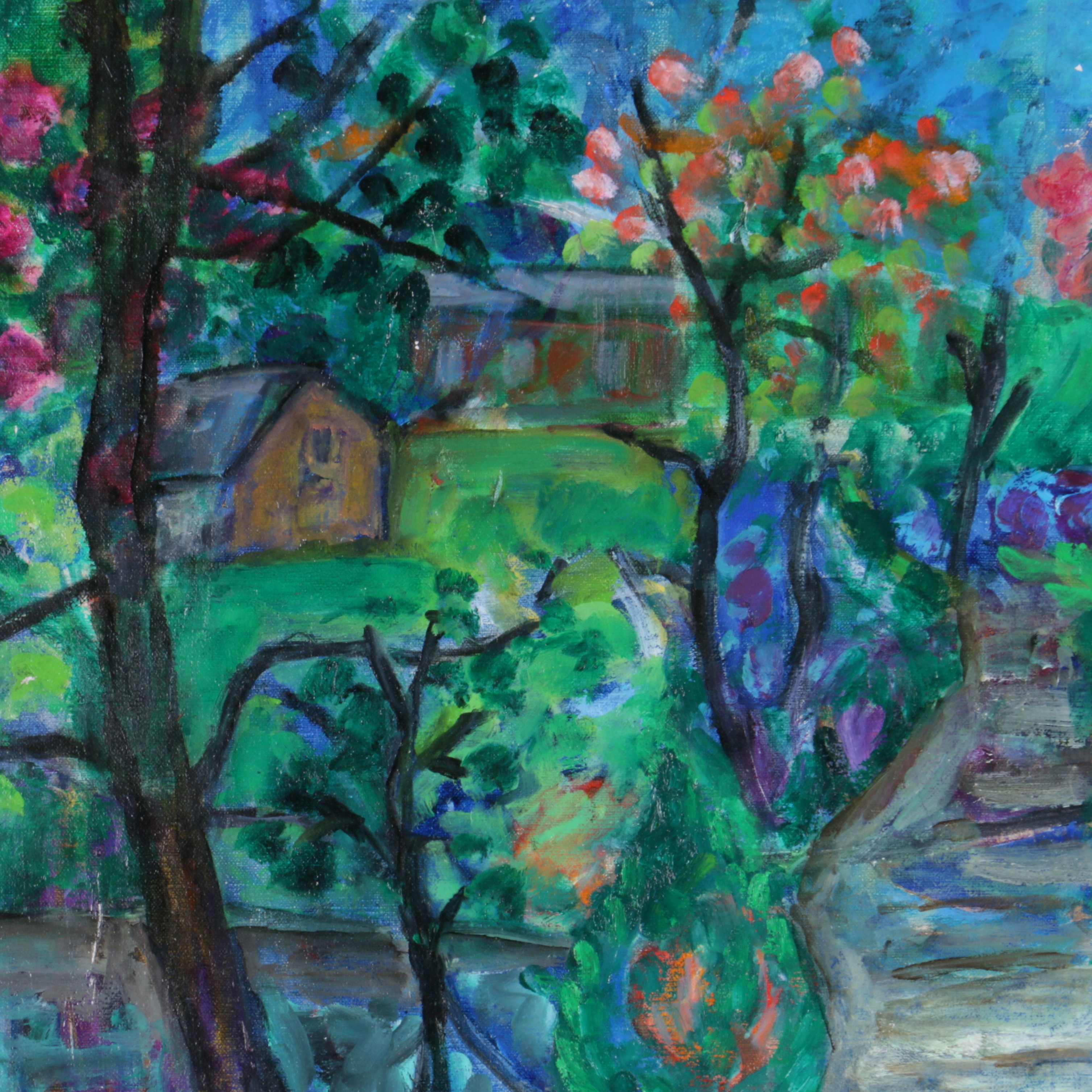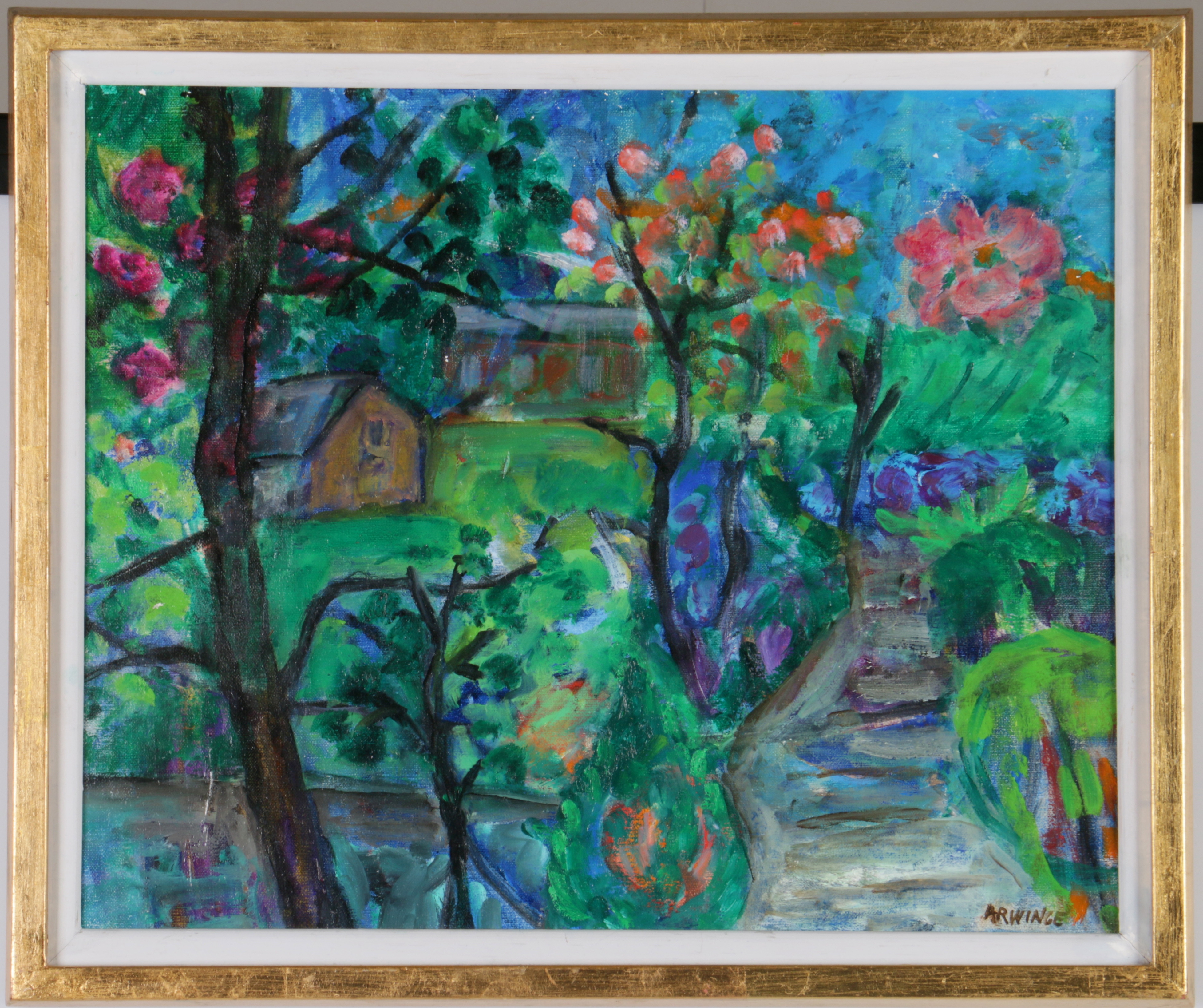 434761. ULLA ARWINGE. Olie på lærred, "Forårshave", signeret.