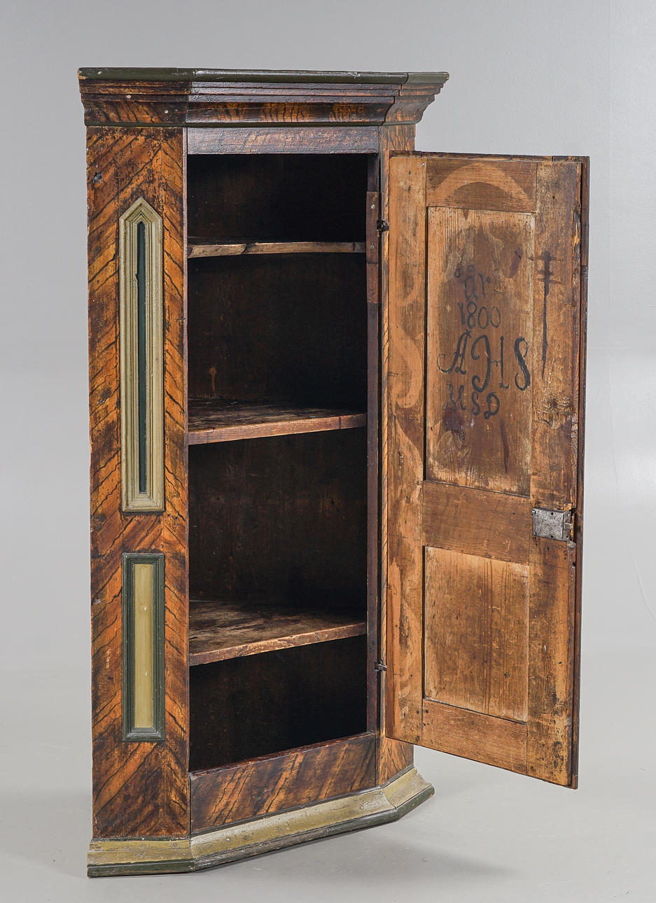 4348050. HJØRNESKAB Allmoge, dateret 1800.