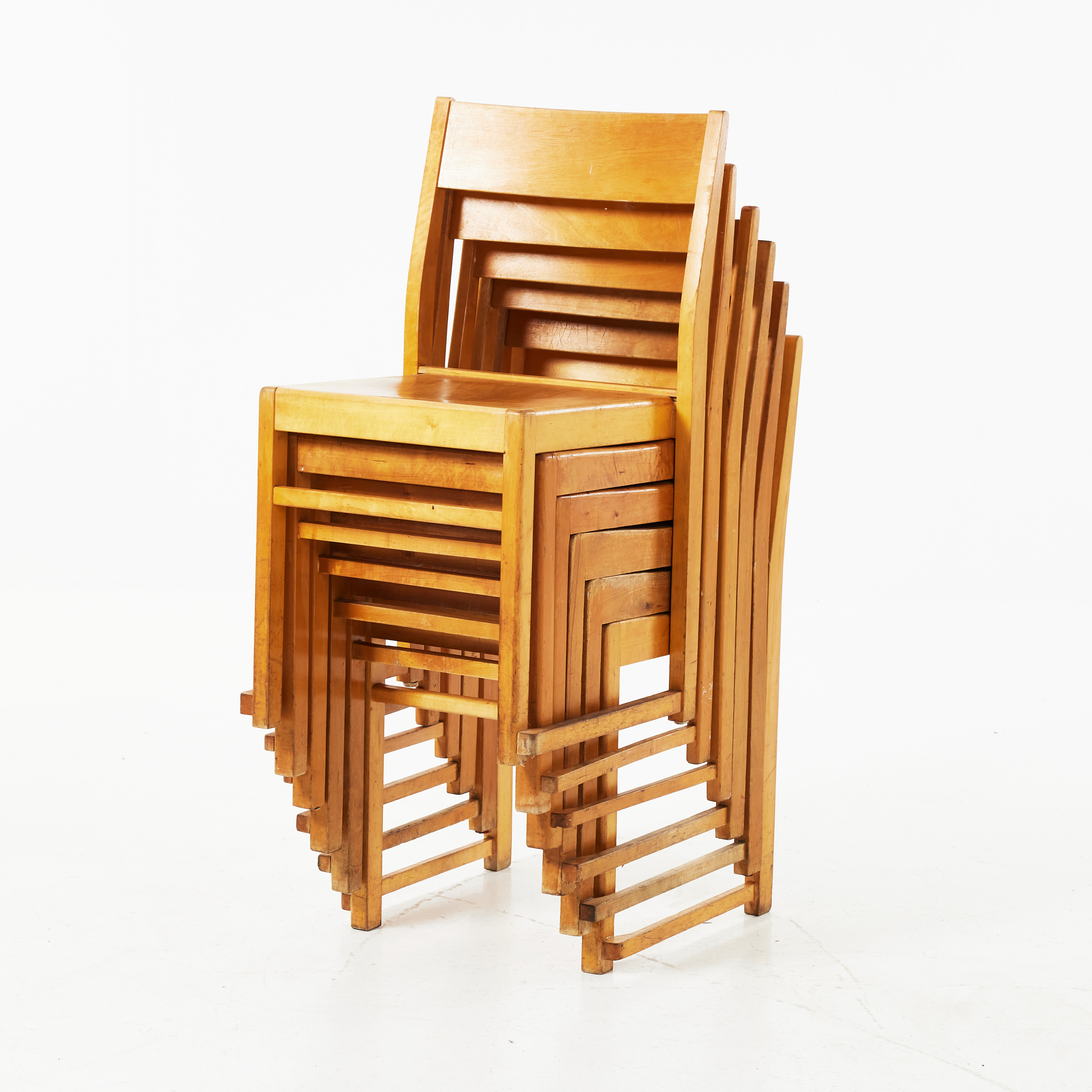 4348076. Stole, 6 stk., orkestermodel, stabelbar, birk.