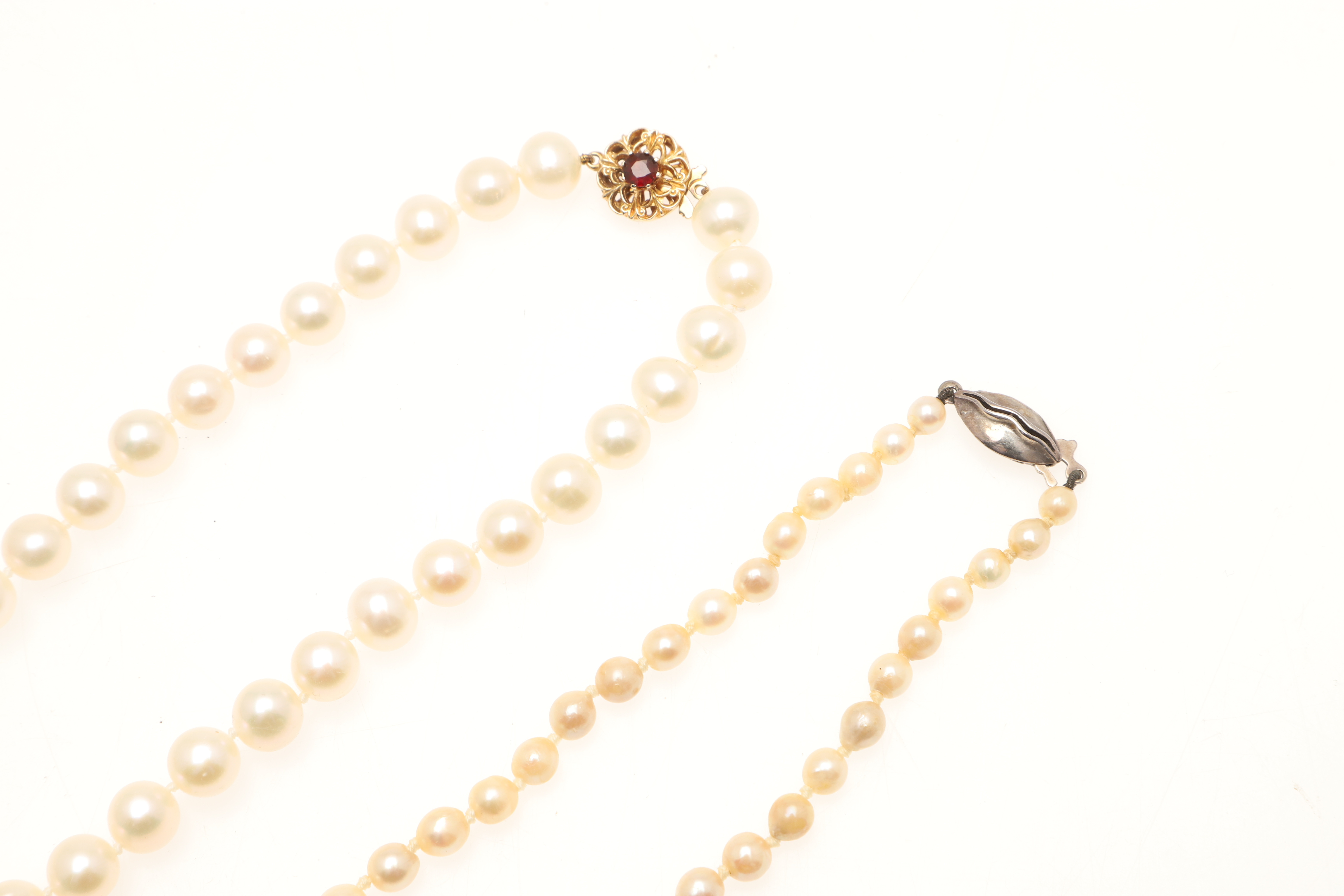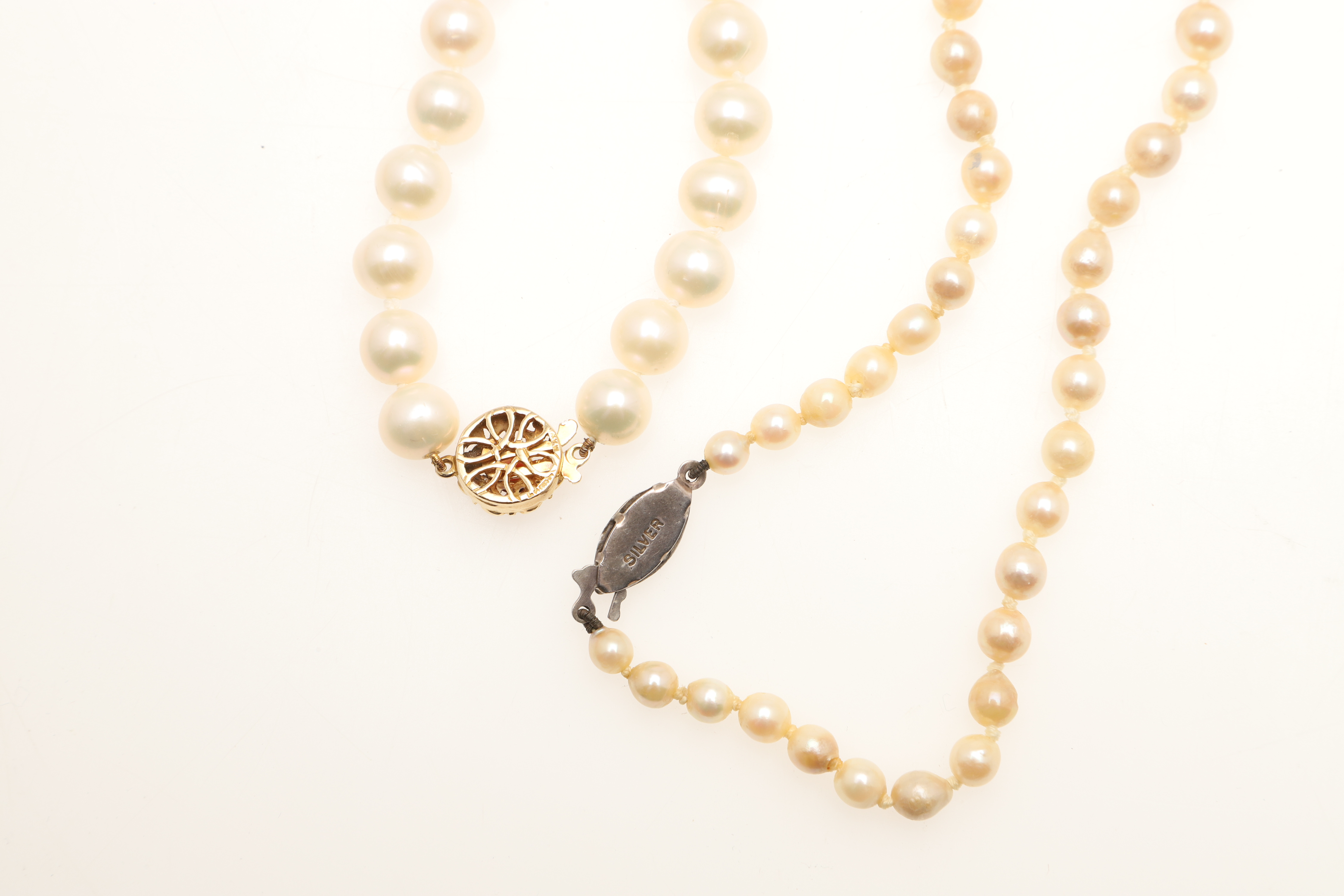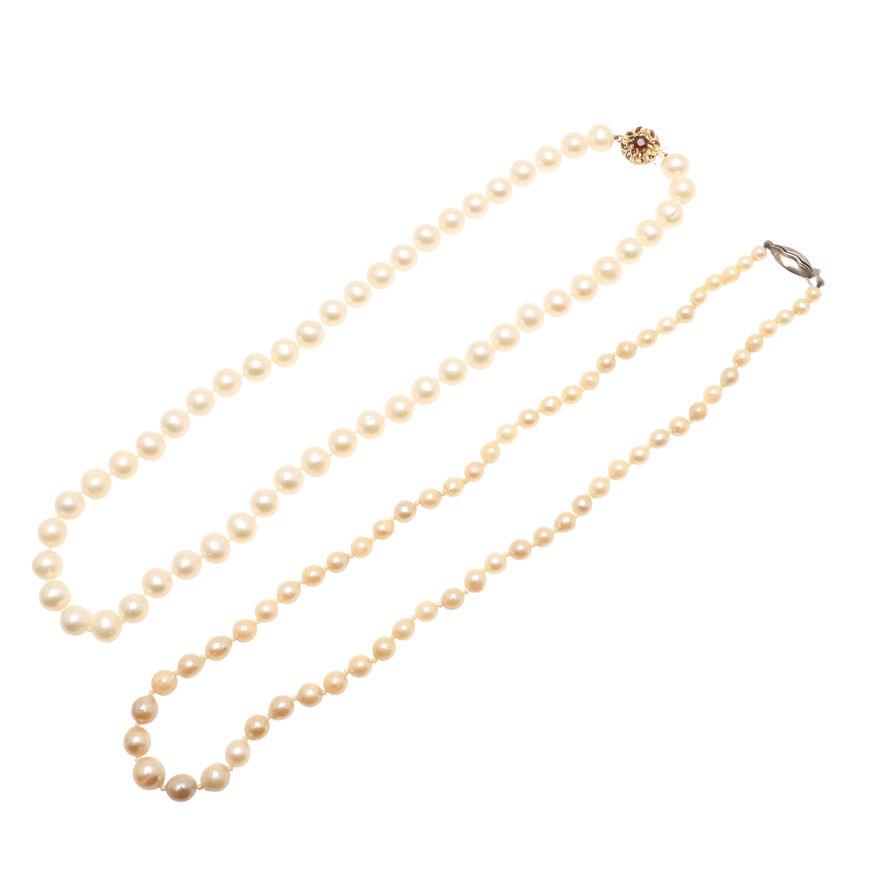 4348795. TO KULTIVEREDE PERLEHALSKÆDER.