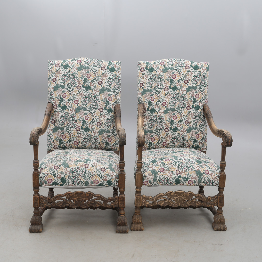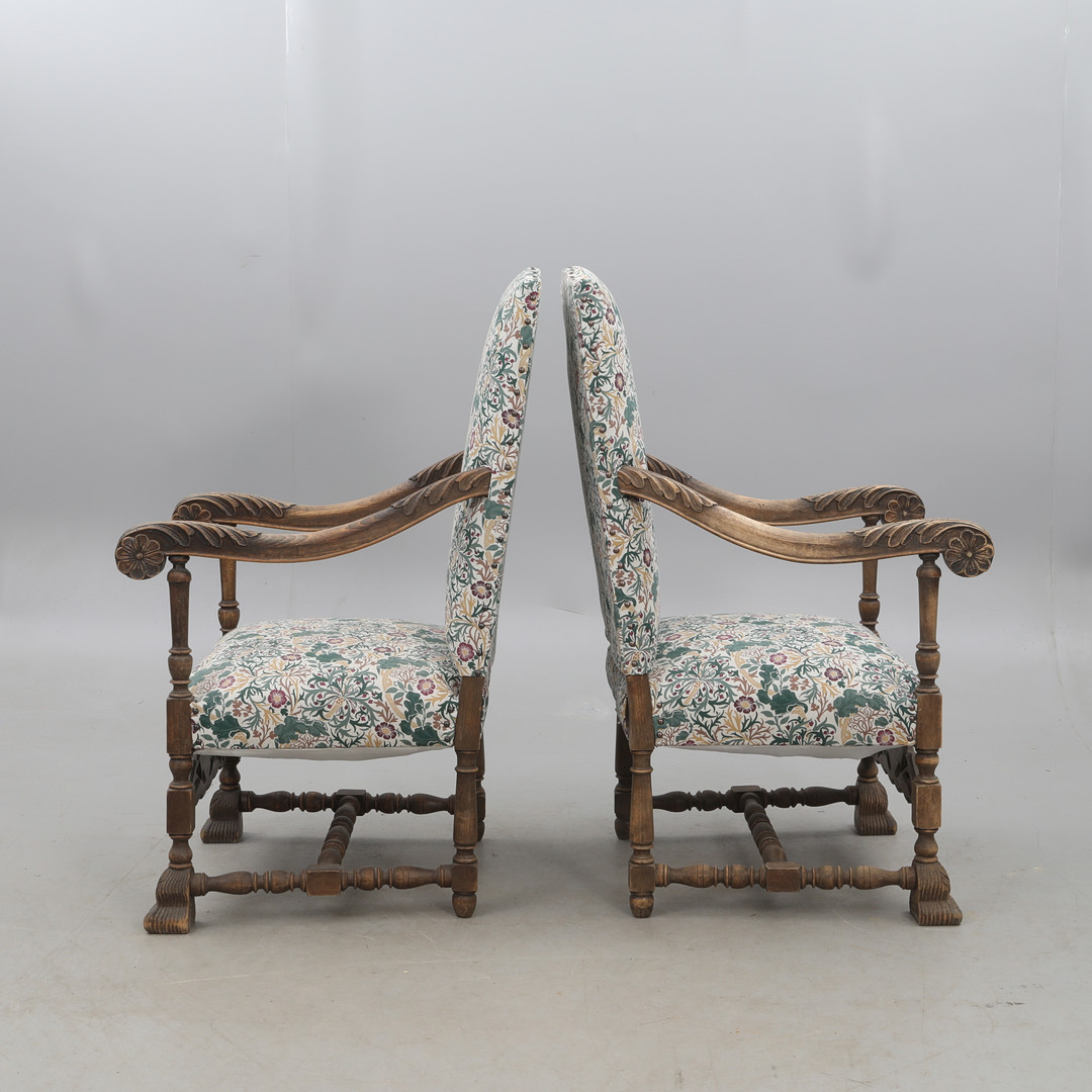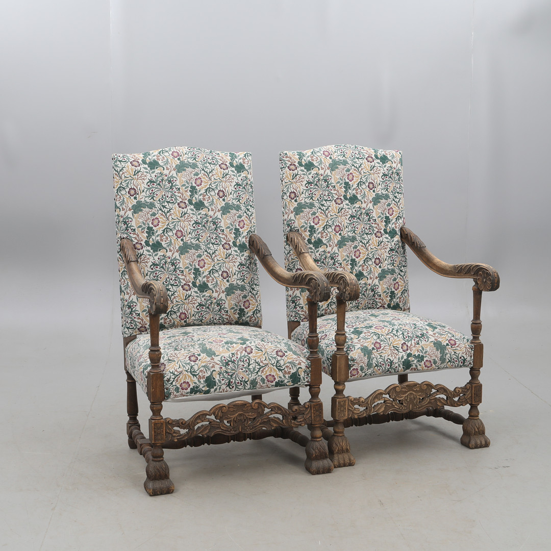 4348846. LÆNESTOLE, 1 par, eg, barok stil.