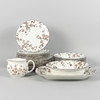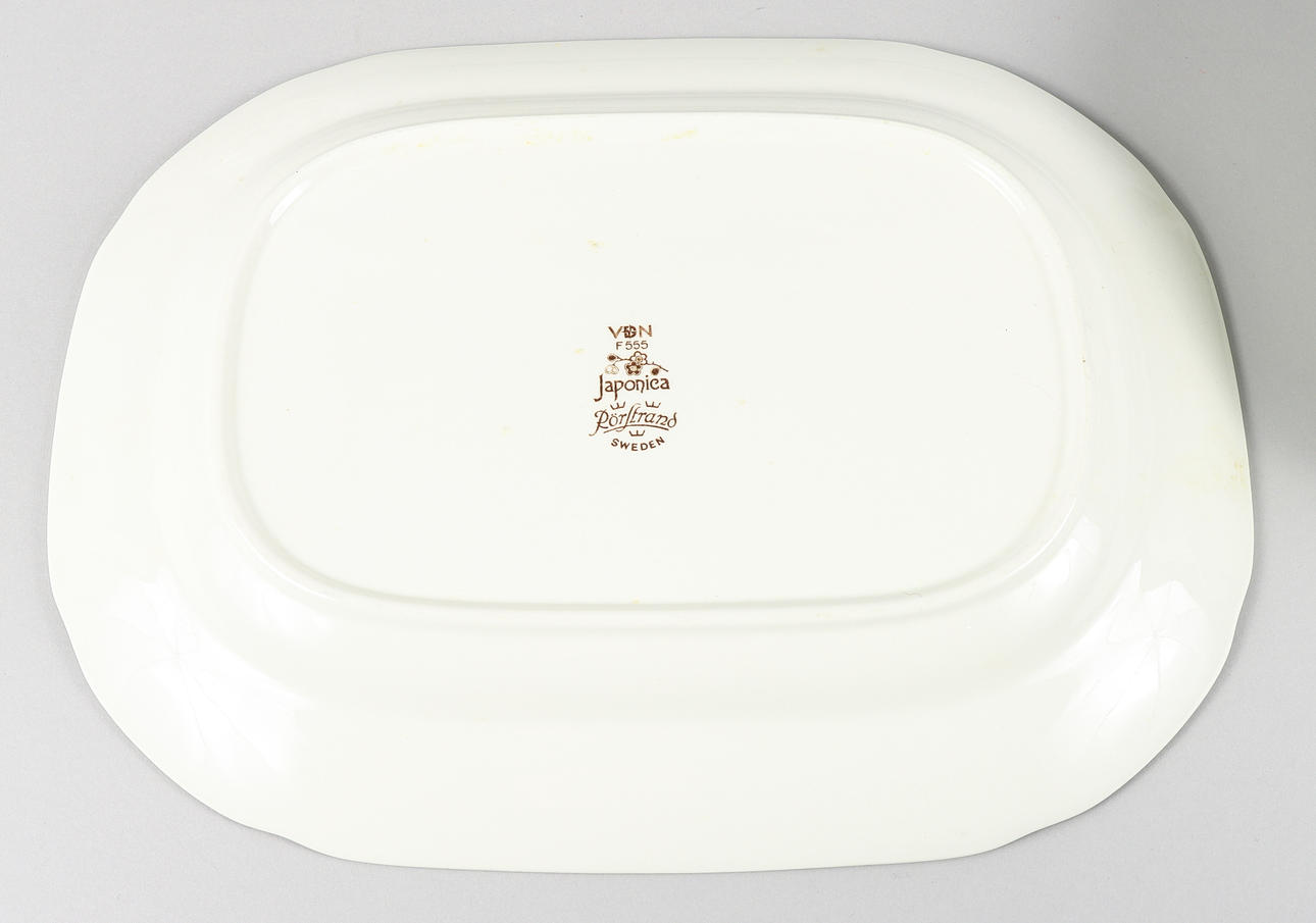 8 stk Dybe plader, diameter 21 cm. 8 stk Middagstallerkener, diameter 24 cm. 8 stk Sideskål, diameter 21 cm. Kande, højde 9 cm. Skål, diameter 22,5 cm. Tønde, længde 32 cm.