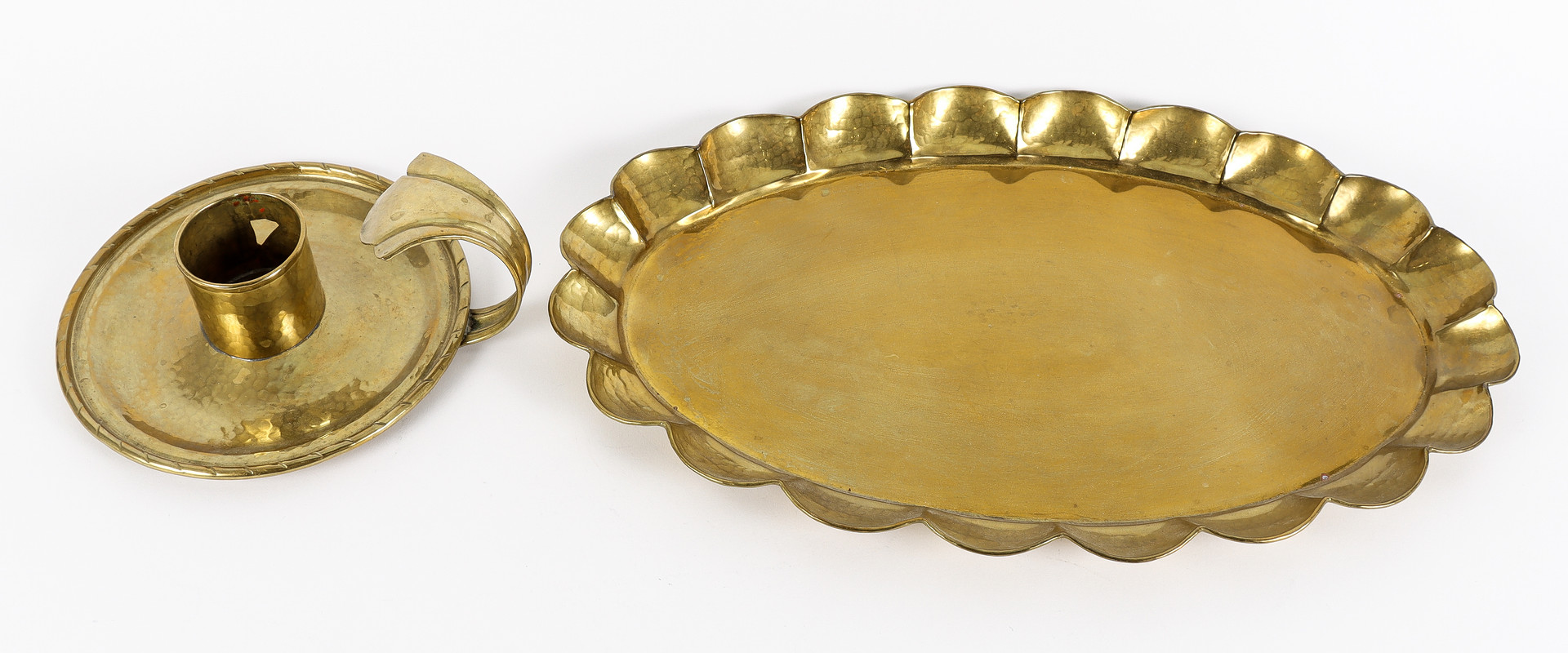 4349224. Bak & lysestage, messing, Arvid Johansson Arvika.