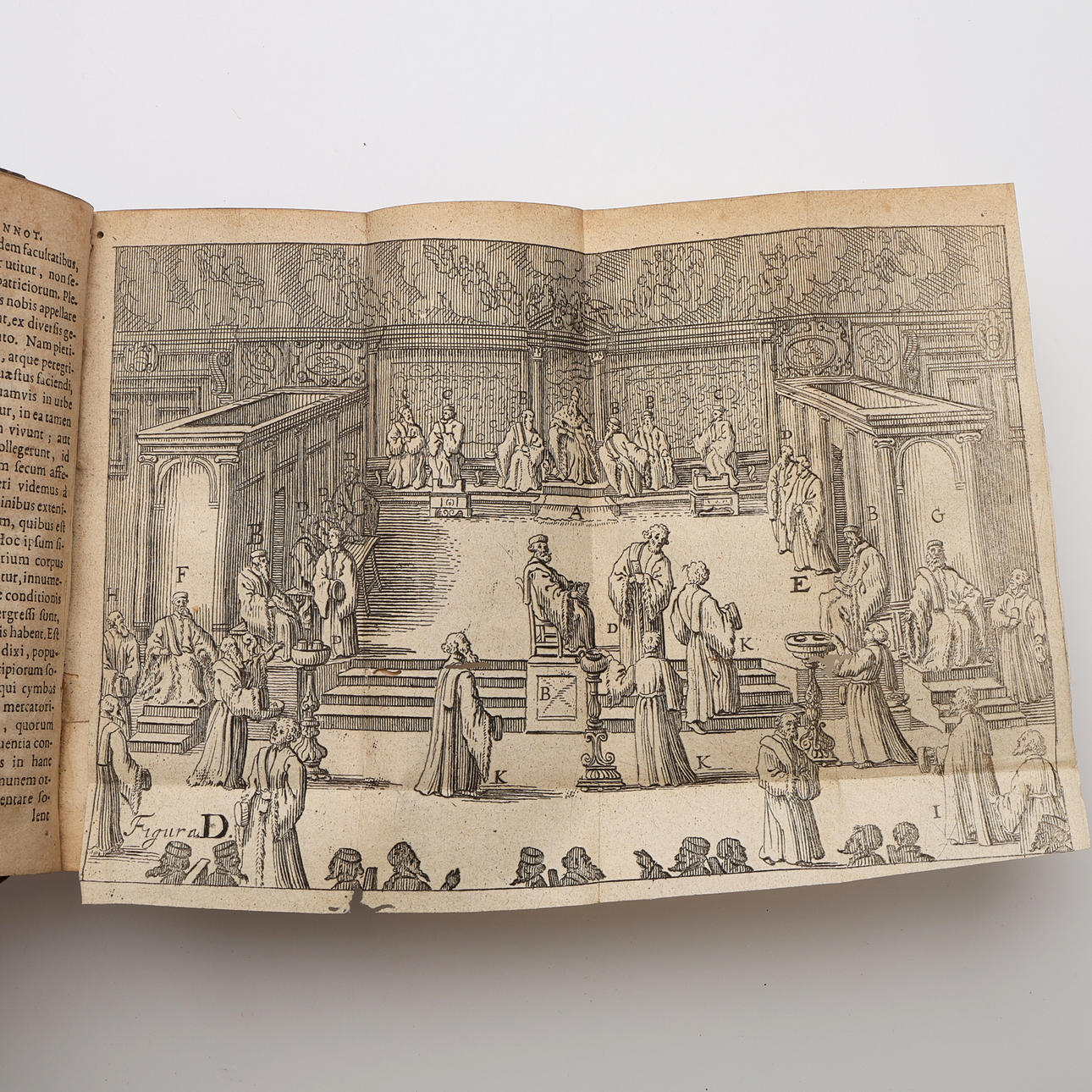 Elzevier Gianotti, Donato, italiensk politiker og sekretær for pave Pius V. . Doner de florentinske Ianots Repub Dialogues. Venstre, med News og Lib. singularer af eiusdem Reip form. Fra elzeviriana fabrik, MLuGD. Batav. (Leiden), 1631. Første Elzevier-udgave. 16. i en moderne læderrem med forgyldt bagtekst og forgyldt ryg- og omslagsdekor. Illustreret en indgraveret titelside og med syv kobbergraveringer på seks foldbare blade. (IV), 467 s. , (IX). Den anden del er et særskilt værk med titlen In donnatum Iannotium et Casparem Contarenum cardinalum de Republica Veneta Notae... Fra fabrik i Elzeviriana, Lugd. Batav. , (Leiden), 1642