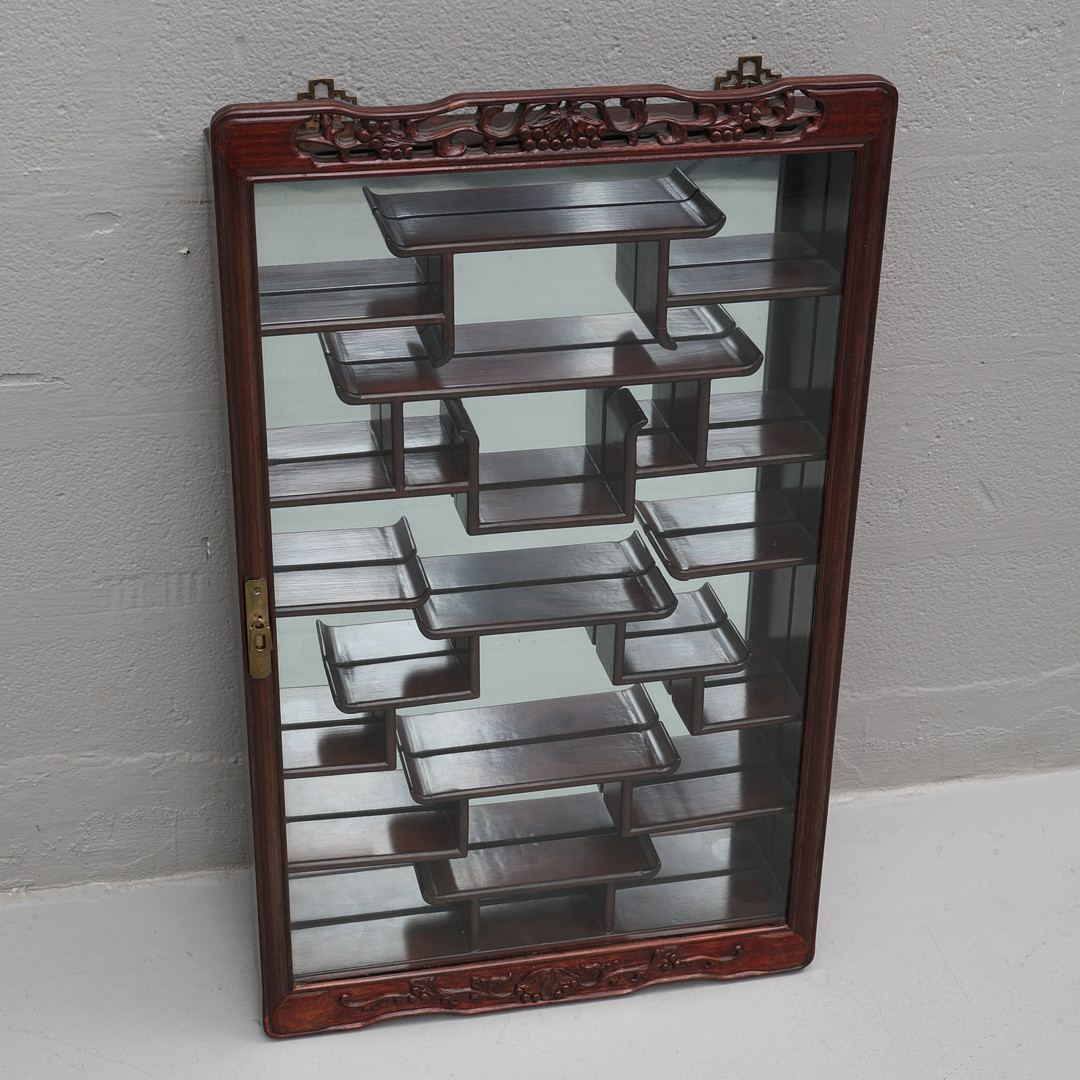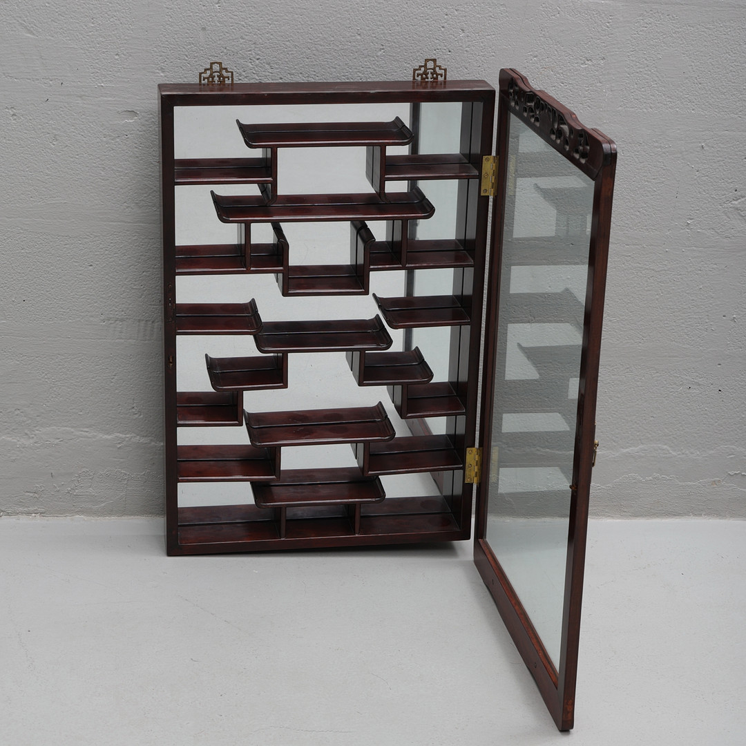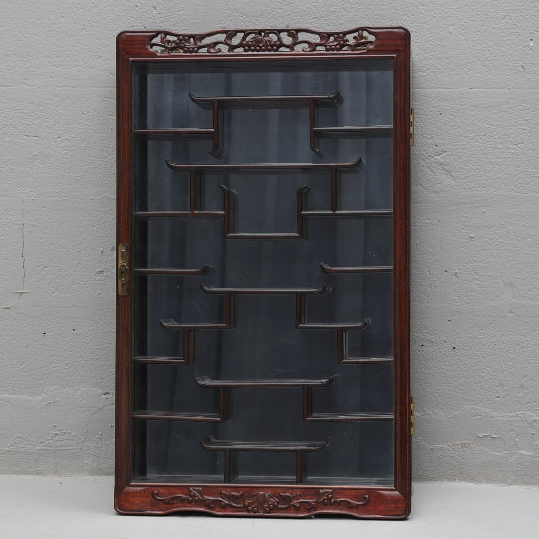4349378. VÆGMONTEREDE VITRINESKABE. Kina, 20. århundrede.