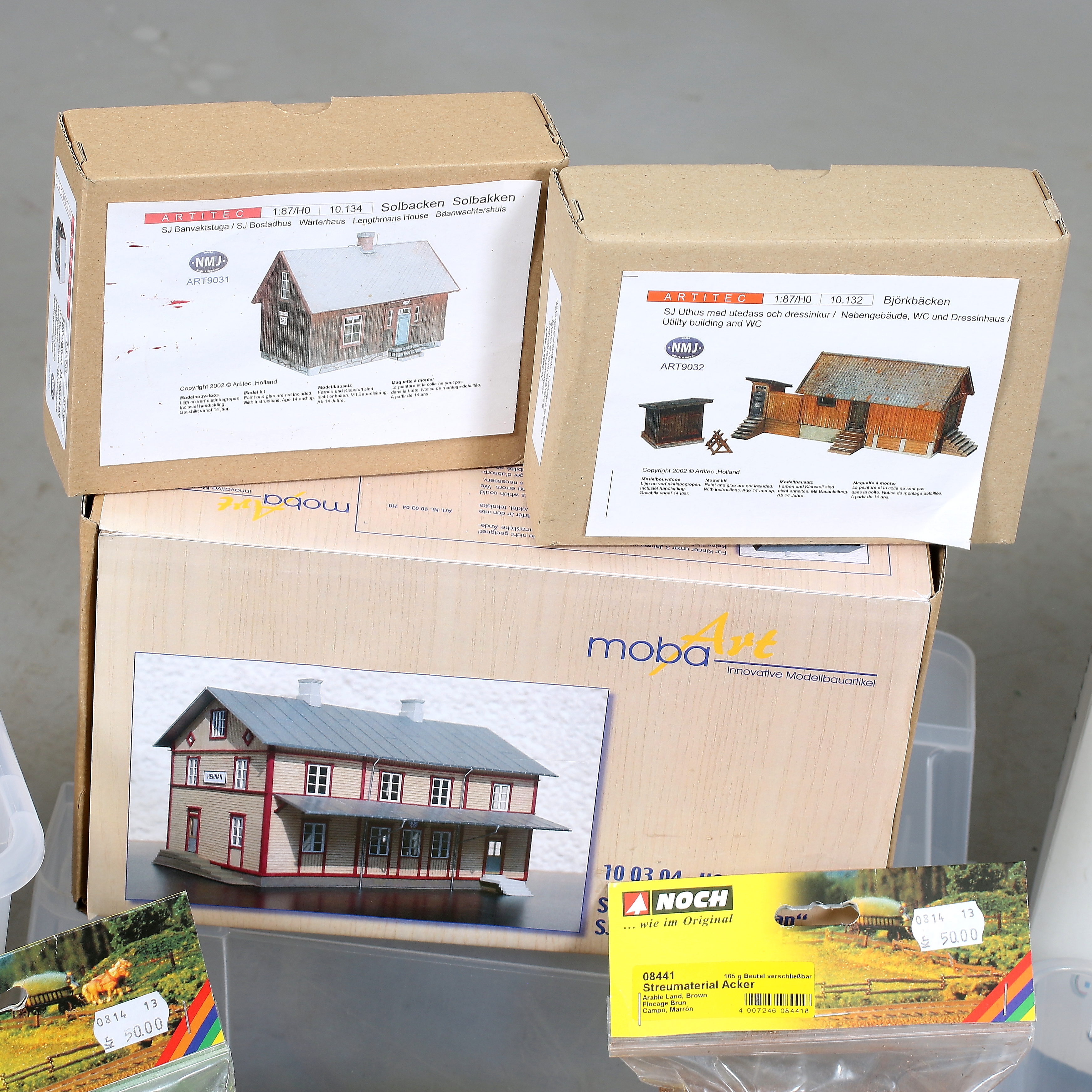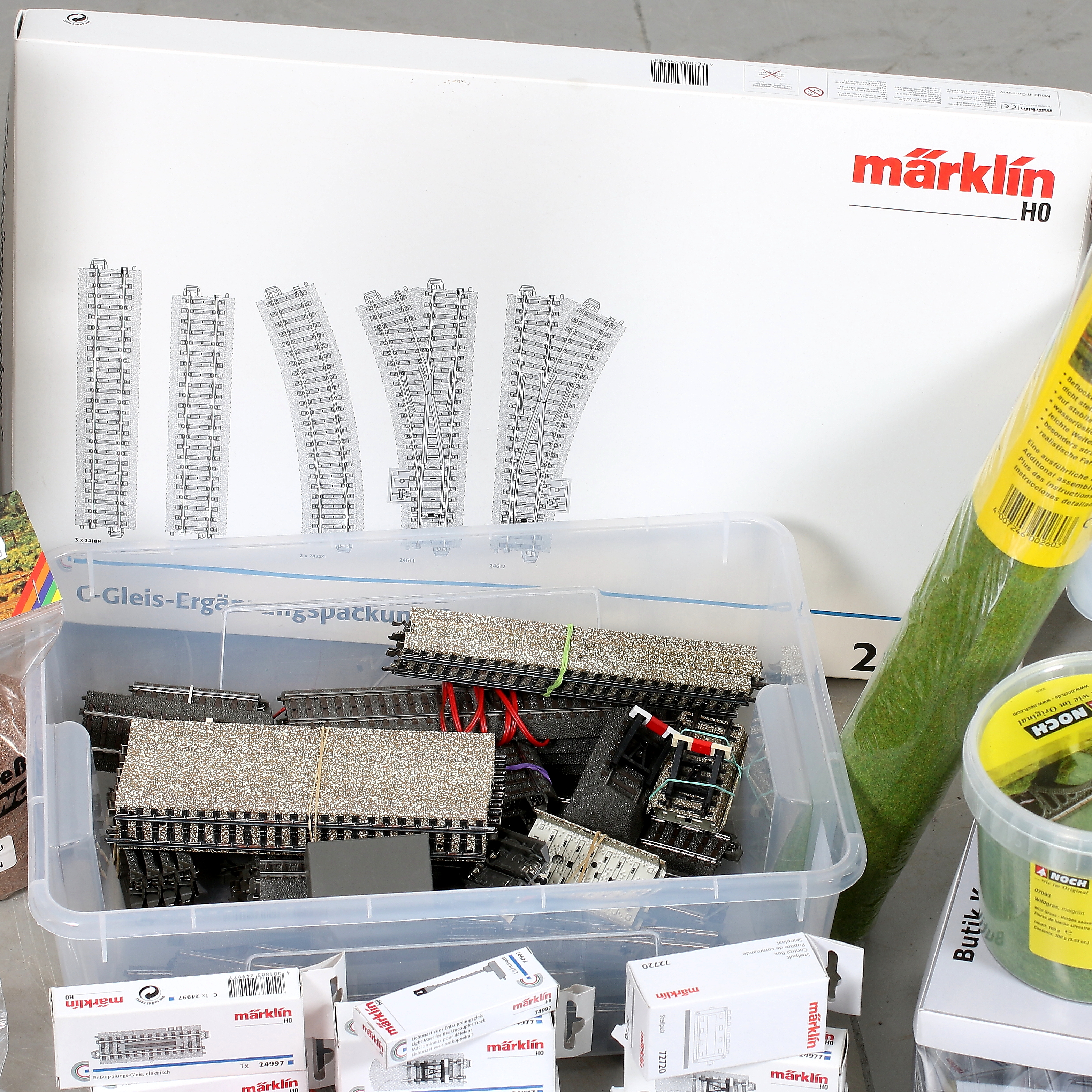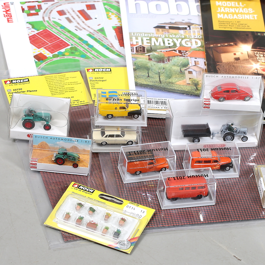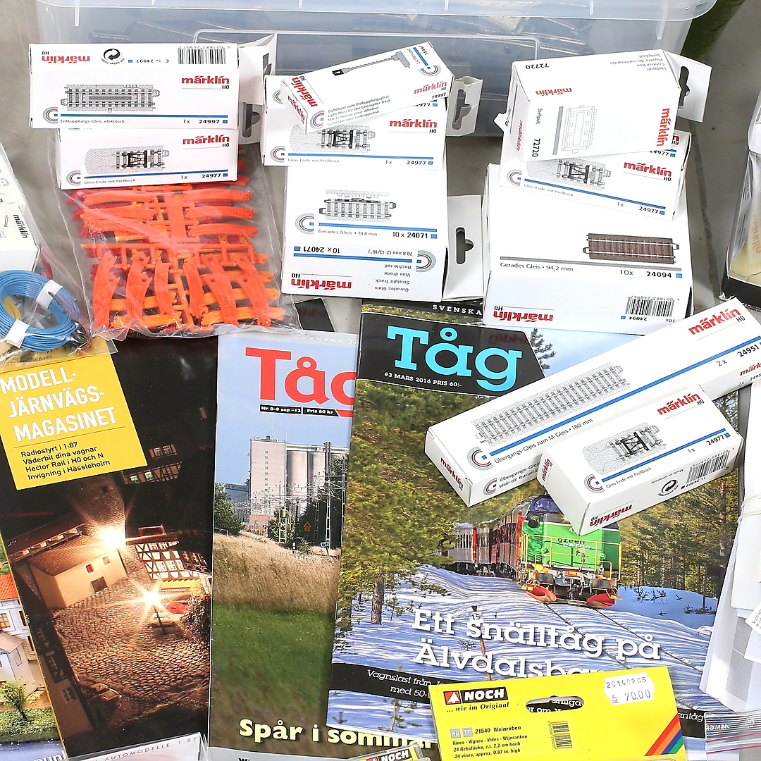 434953. MÄRKLIN, H0, 128 dele, skinner, hus og dekorationsmateriale.
