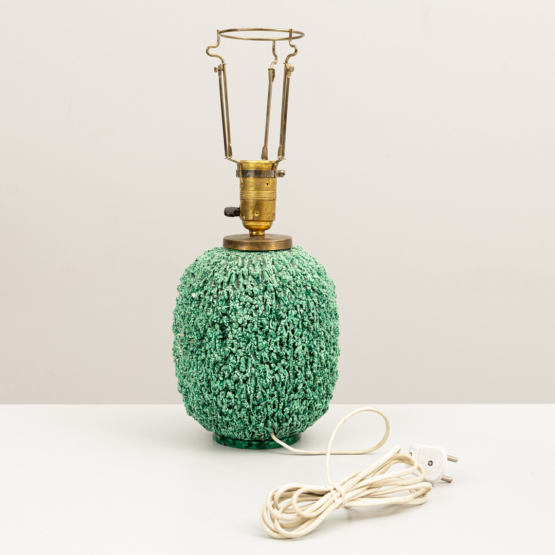 4350027. GUNNAR NYLUND. Bordlampe, „Chamotte“, Rörstrand grøn glaseret.