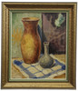 4350306. OIDENTIFIERAD KONSTNÄR. Olie med panel, stilleben med vaser.