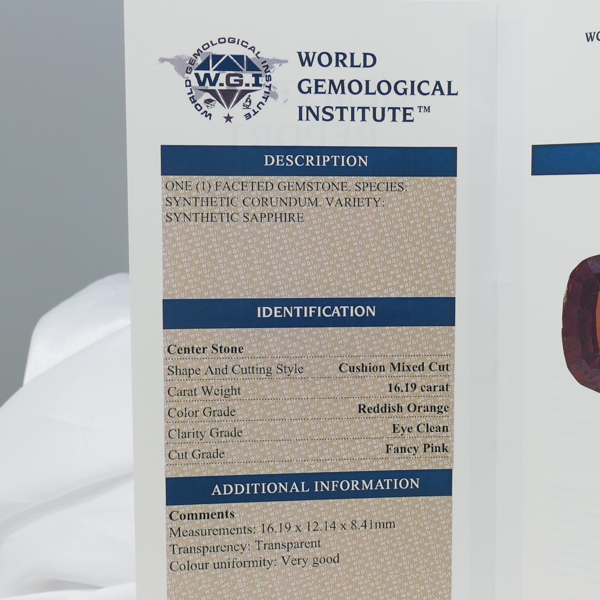 4350417. SYNTETISK SAFIR, 16.19ct.