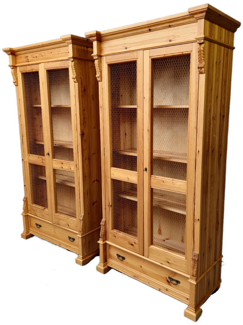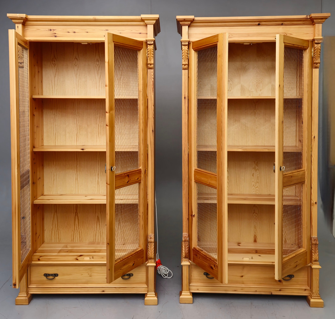 4350753. PAR VITRINESKABE. RUSTIK. FYRRETRÆ.