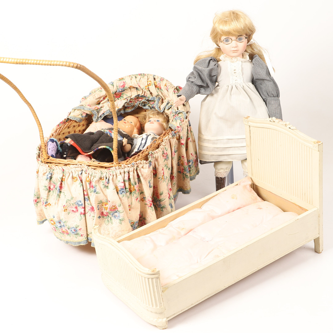 4351035. DUKKER MED TILBEHØR, 5 stk., 20. århundrede.