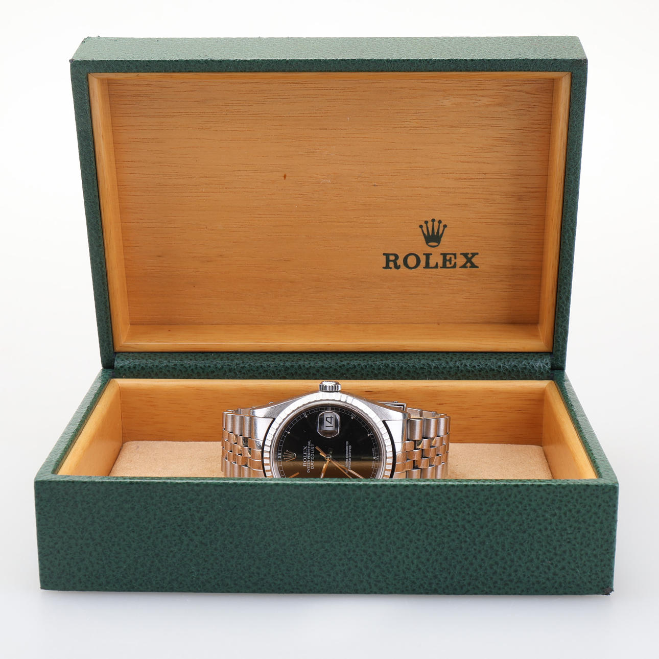 Automatisk, safirglas, dato.
