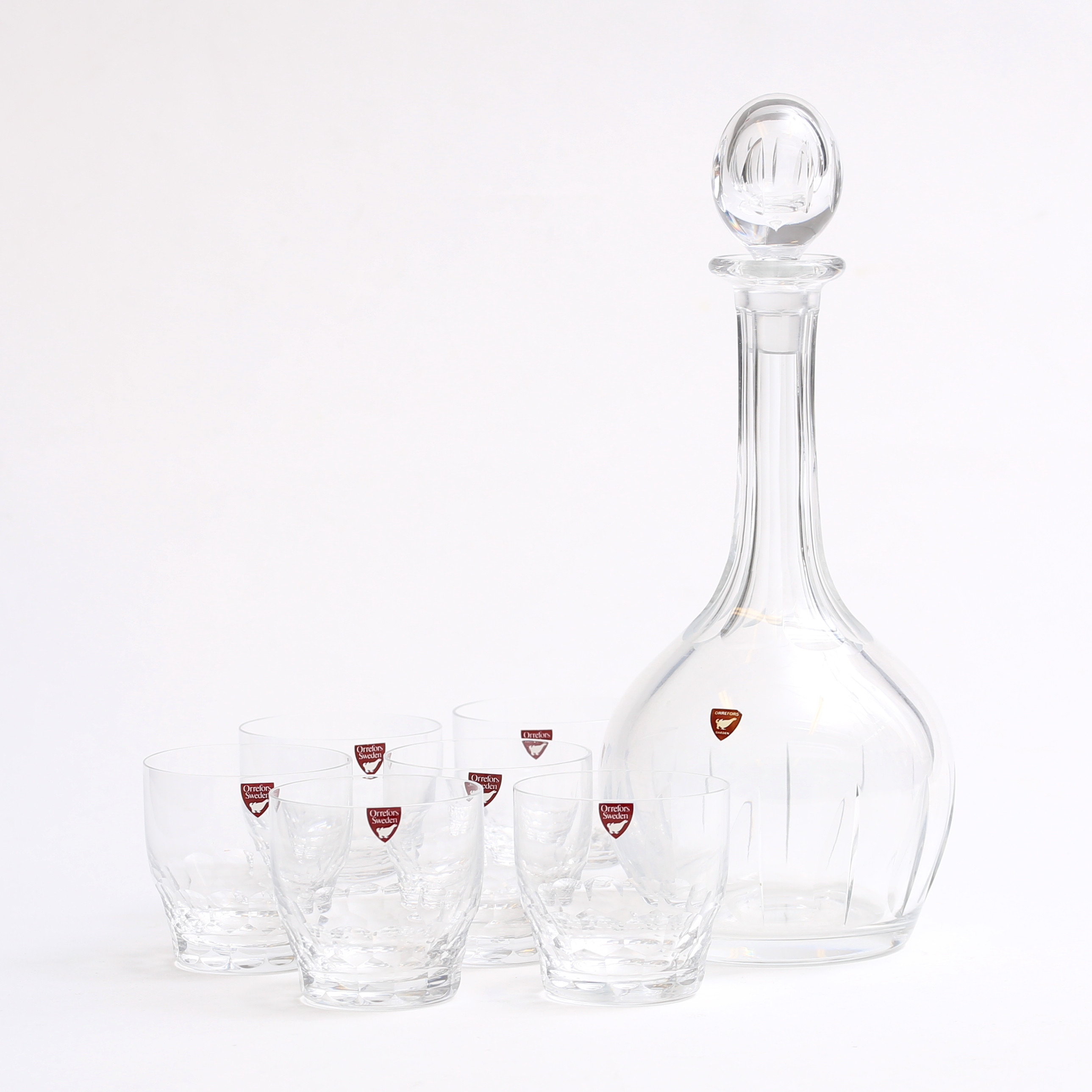 4351412. SELTERGLASS, 6 stk og CARAFF, Orrefors.