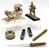 Sydamerikansk gauchofigur på hesteryg stemplet Eberkoc - 9,5 cm høj t/w orientalsk sværdstil papirkniv osv.