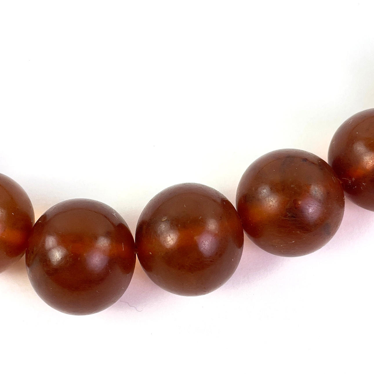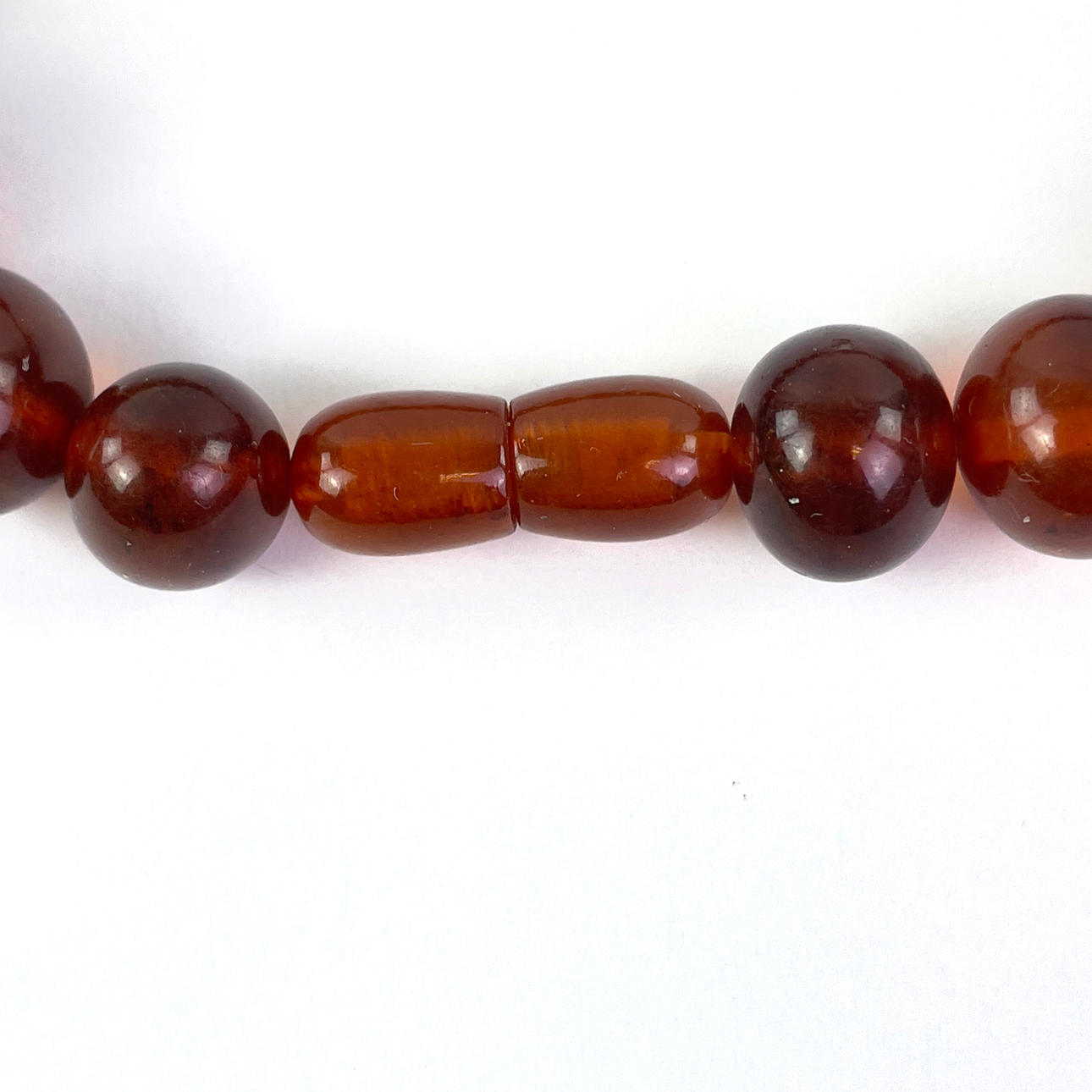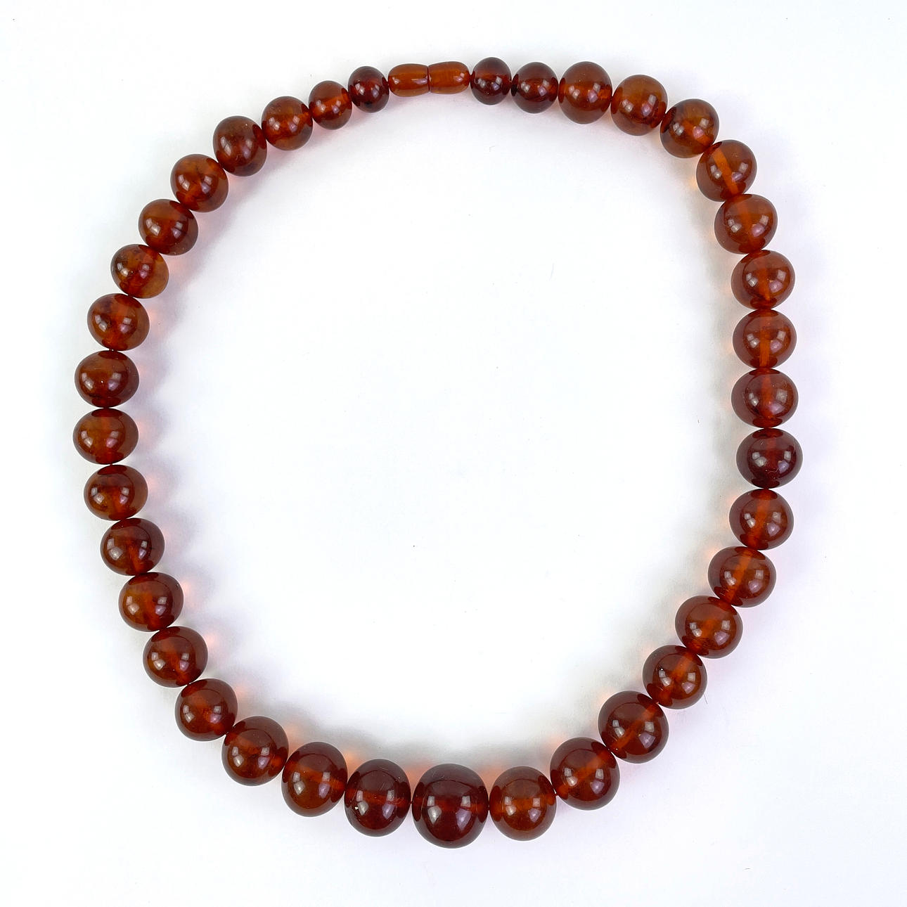 Halskæde 2 stk med afmålte ravperler, skruelås, længde ca. 58 cm, vægt ca. 85 gram, længde ca. 63 cm, vægt ca. 80 gram.