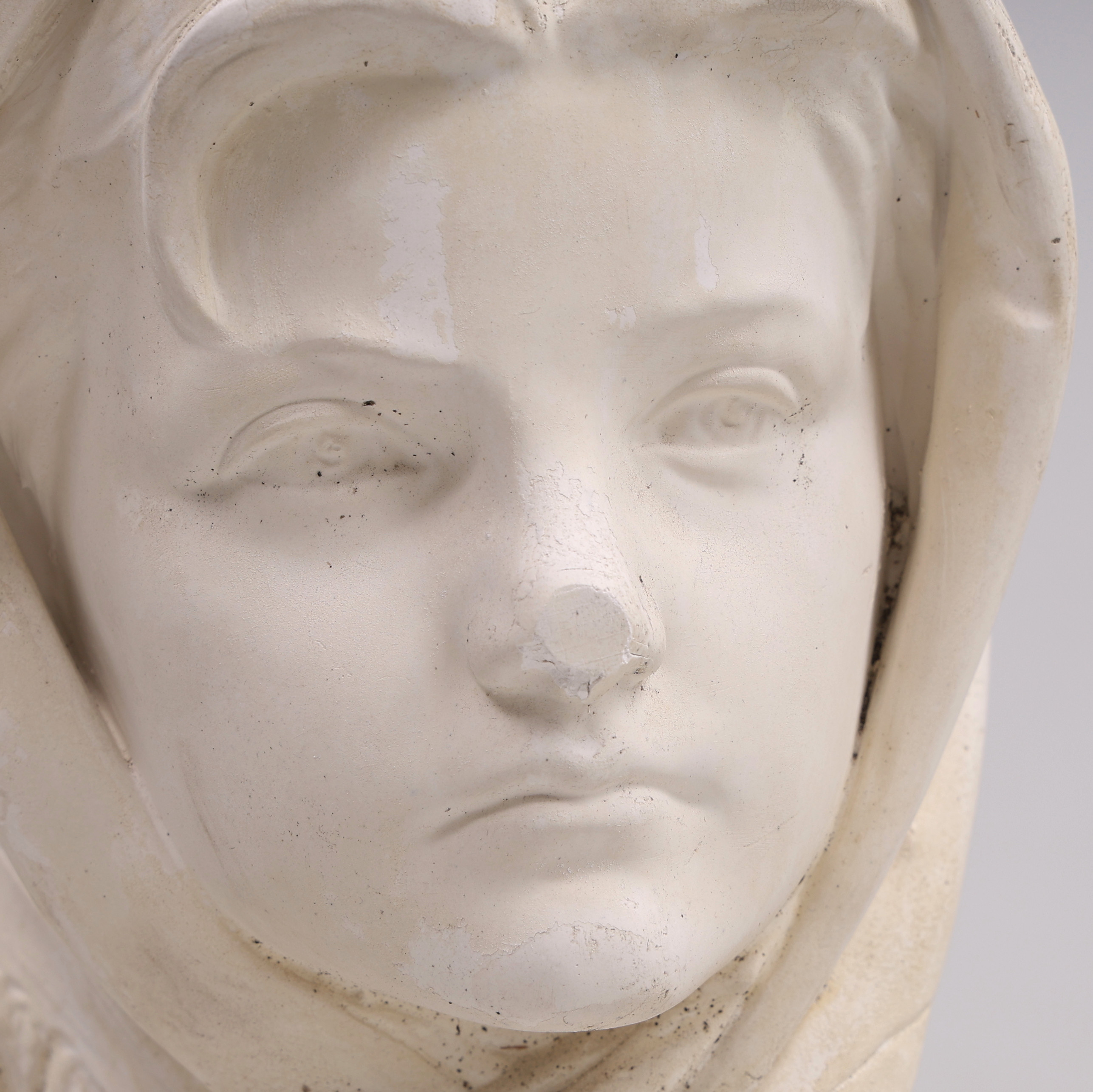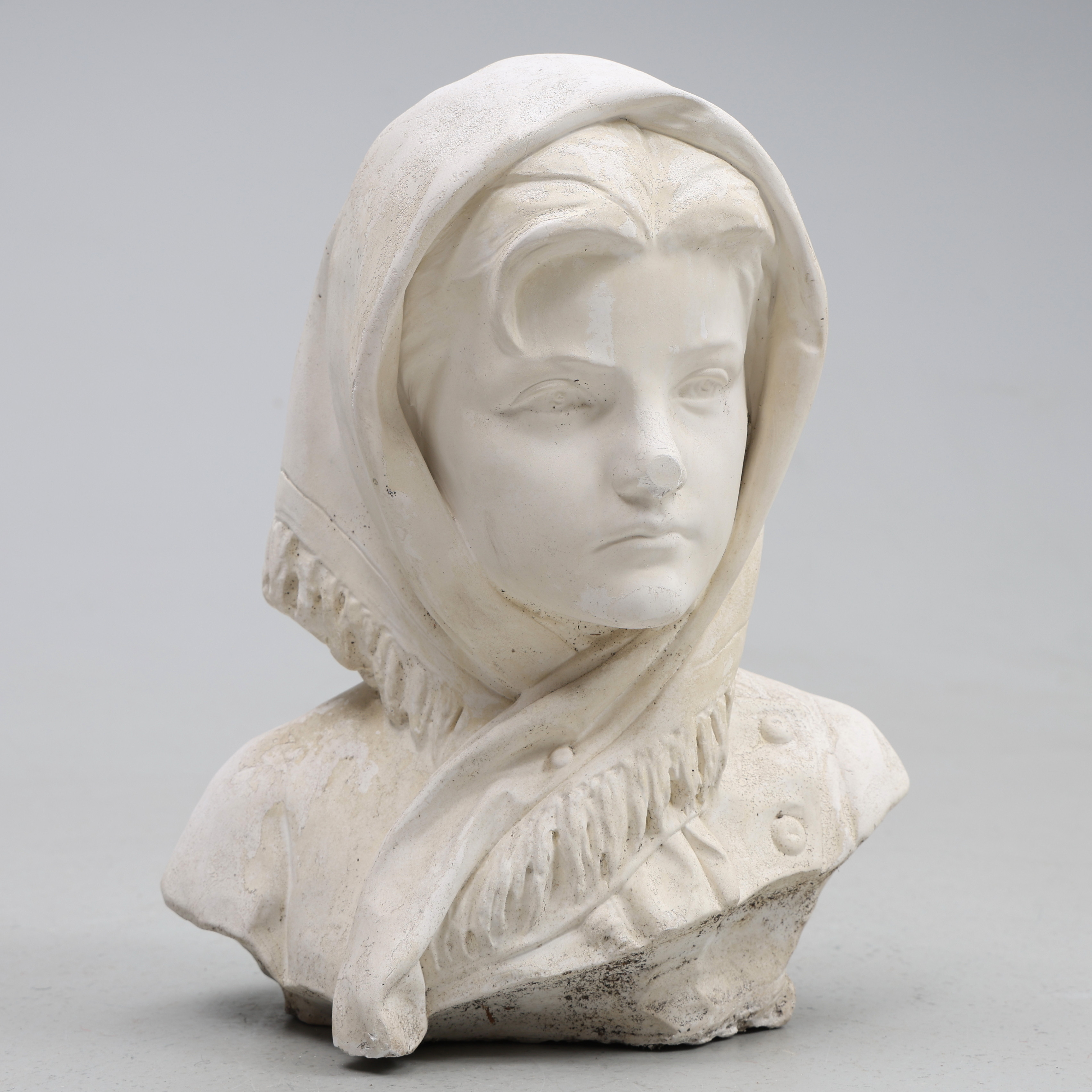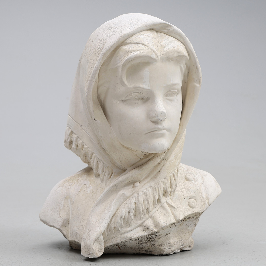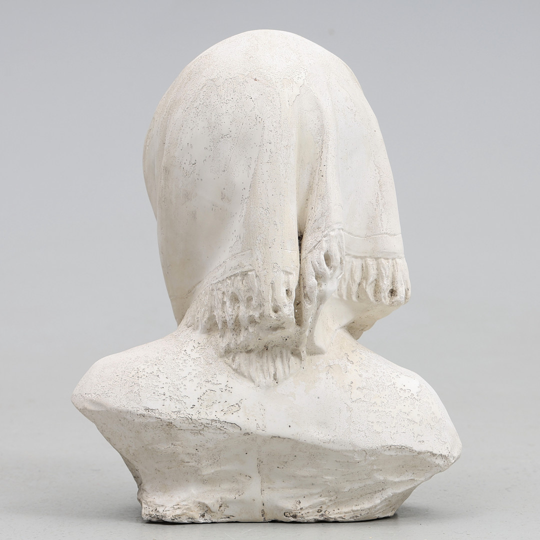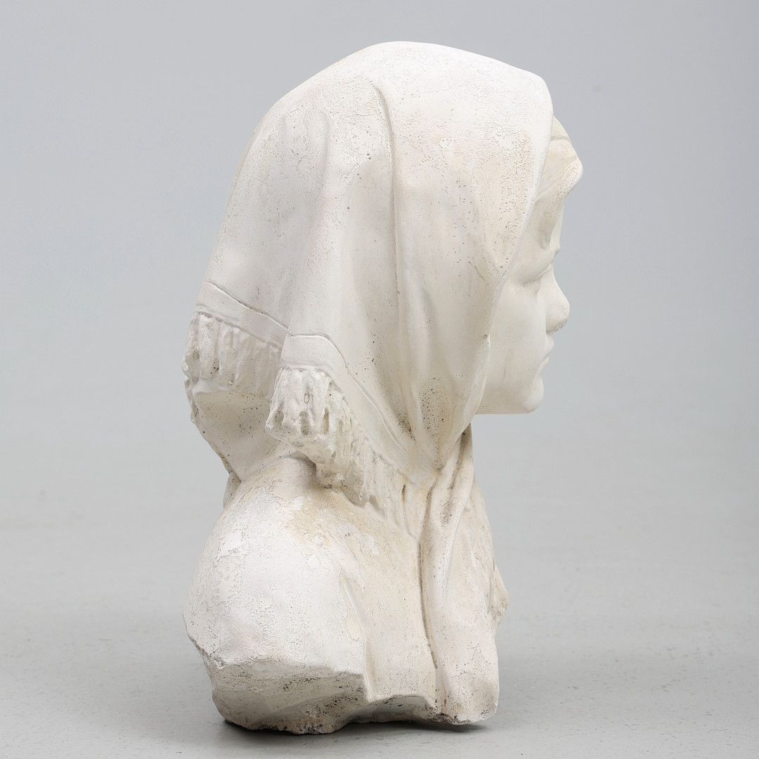 4353027. SKULPTUR. Gips, pige med sjal.