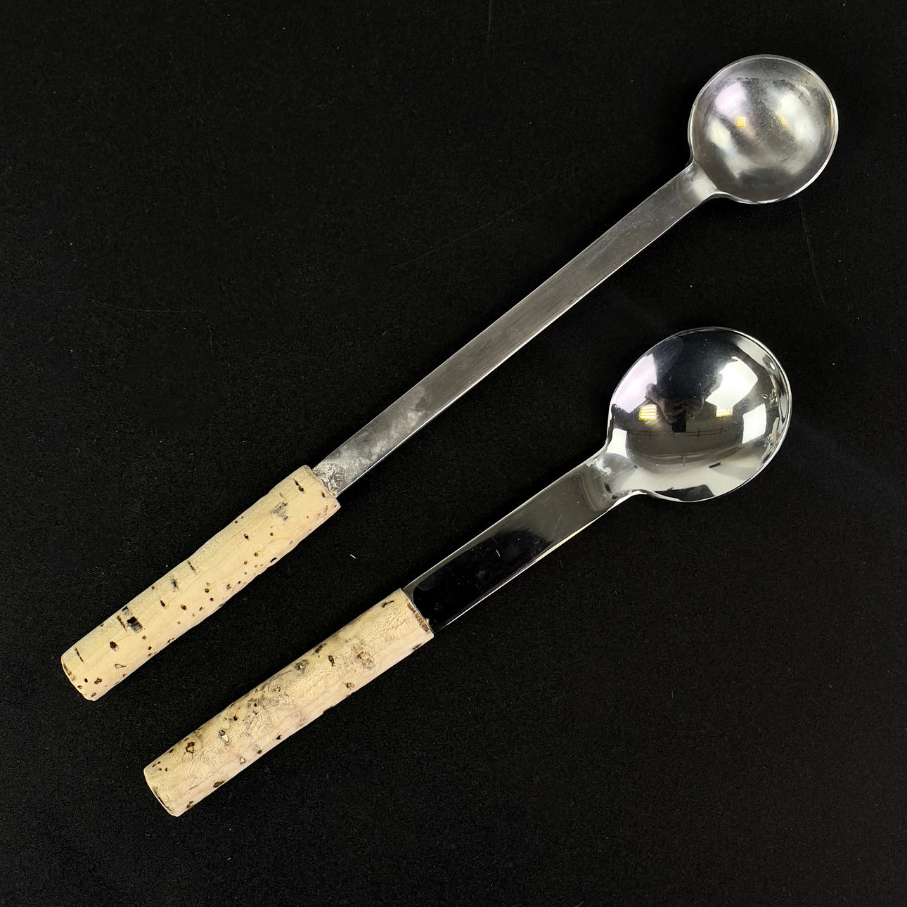 2 skåle med korkunderlag, højde ca. 6,5 cm.