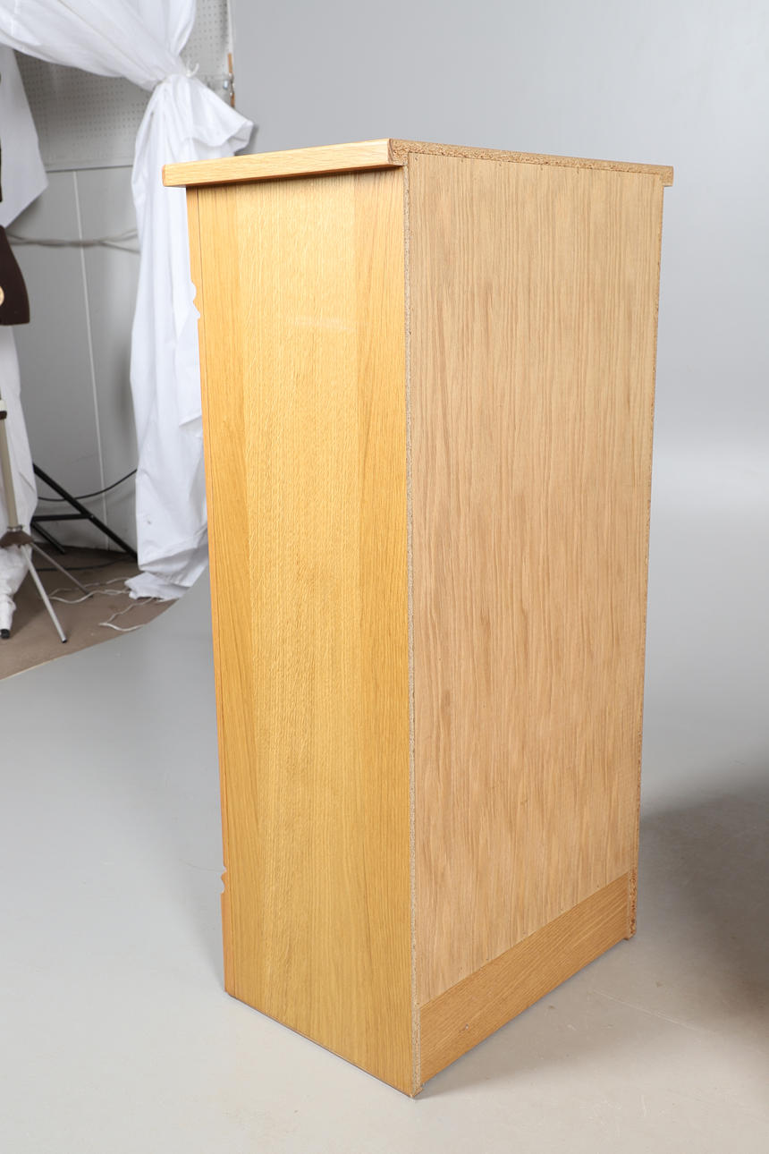 4353469. TRE MODERNE MØBLER I LYS EGETRÆSFINISH.