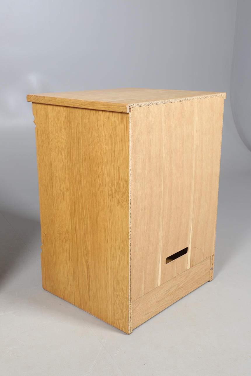 TRE MODERNE MØBLER I LYS EGETRÆSFINISH.