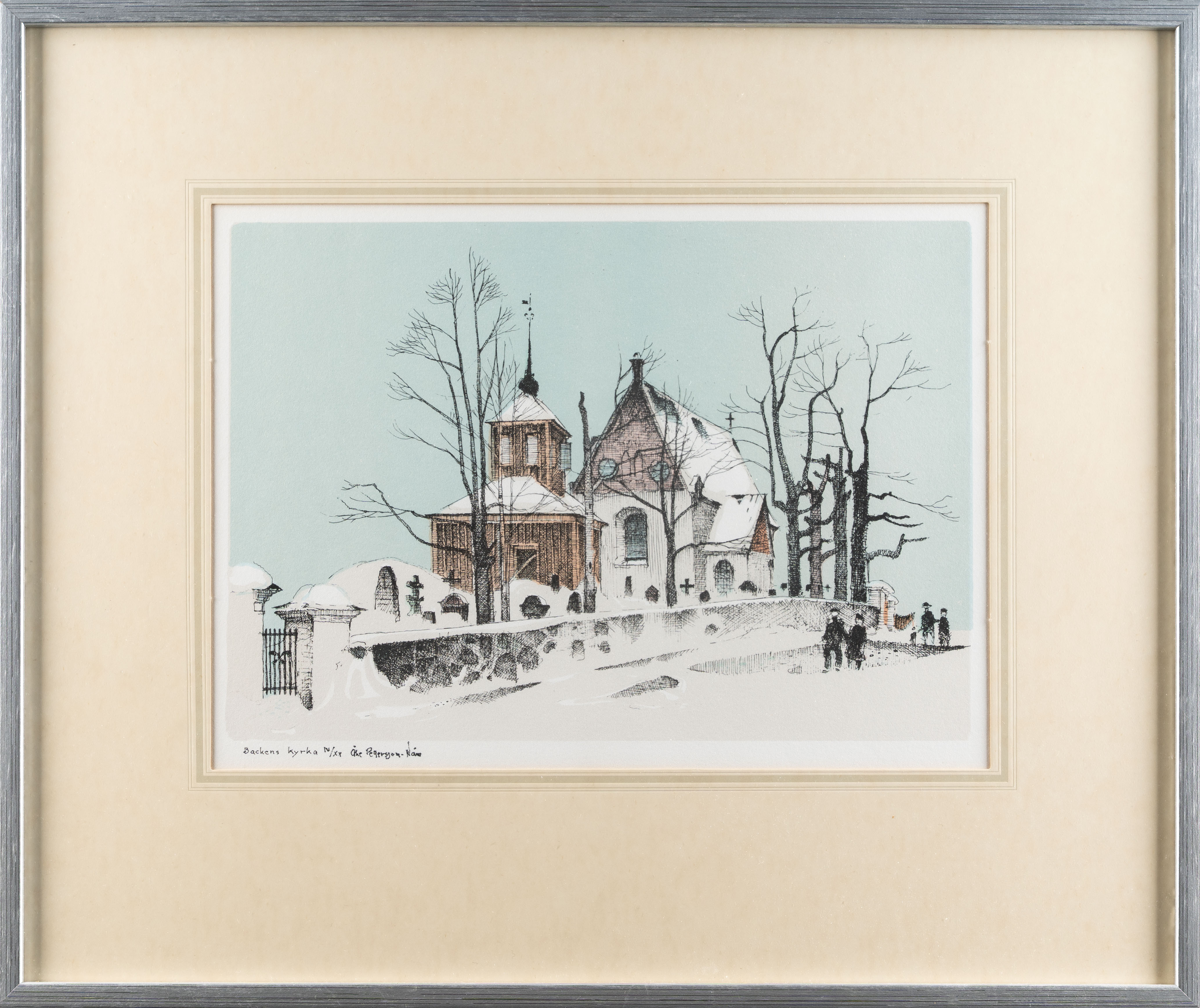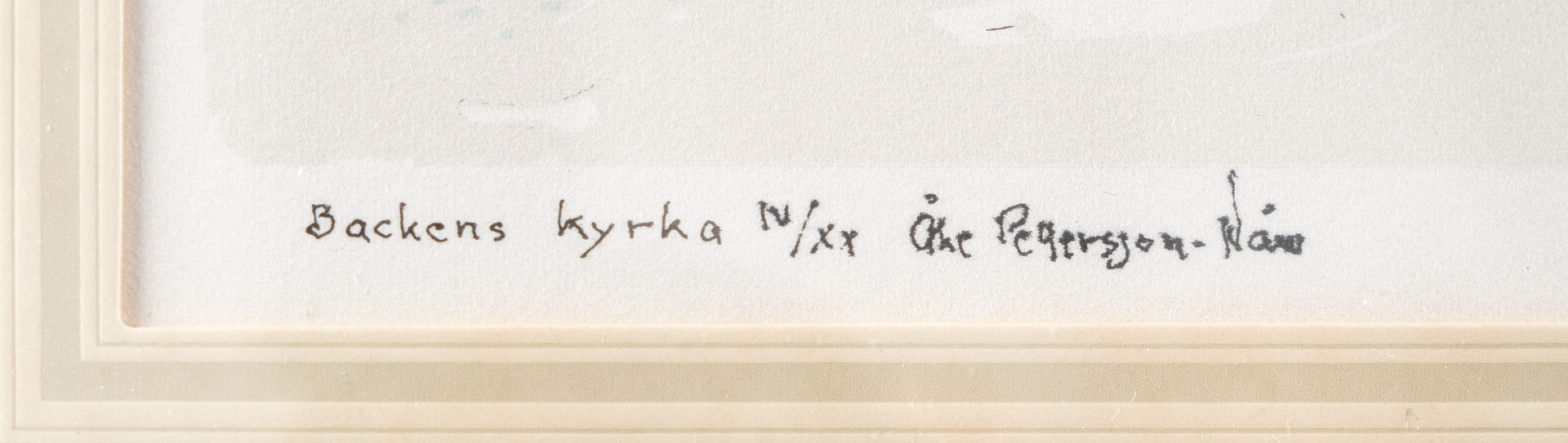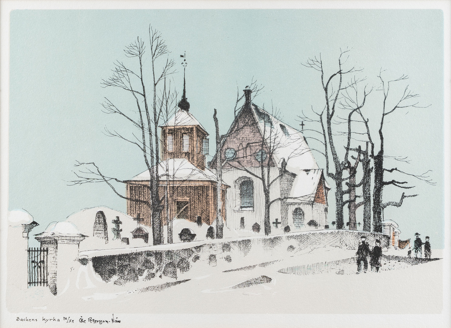 4353540. ÅKE PETTERSSON-NÅW. Farvelitografi, „Backens Kyrka“.
