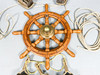 BÅDRAT & BLOK, 6 dele, træ, messing, 20. århundrede.