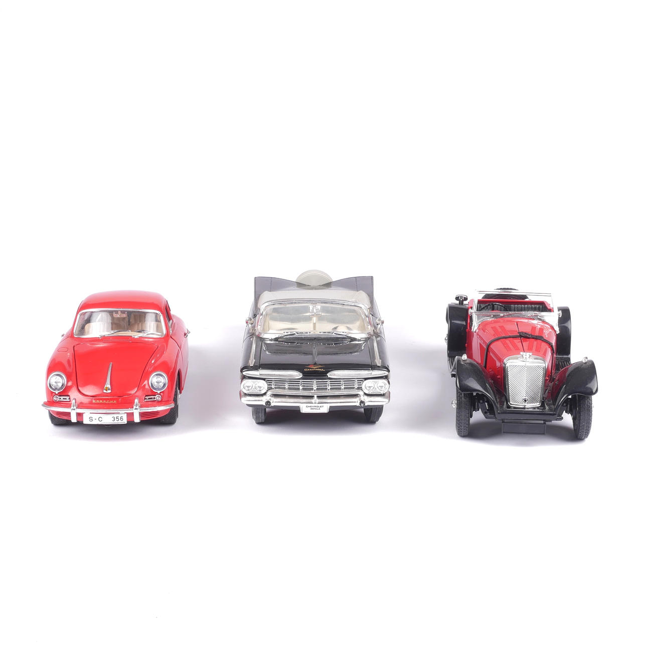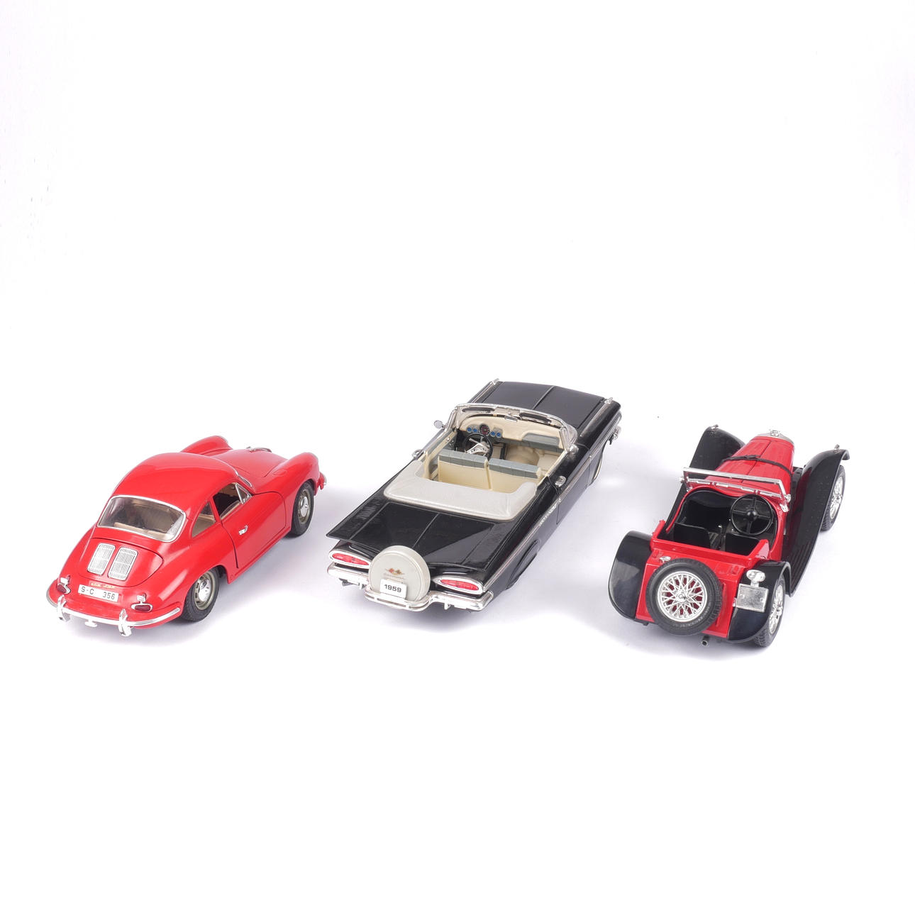 4353718. LEGETØJSBILER, 3 stk, modelbiler, bla Burago.