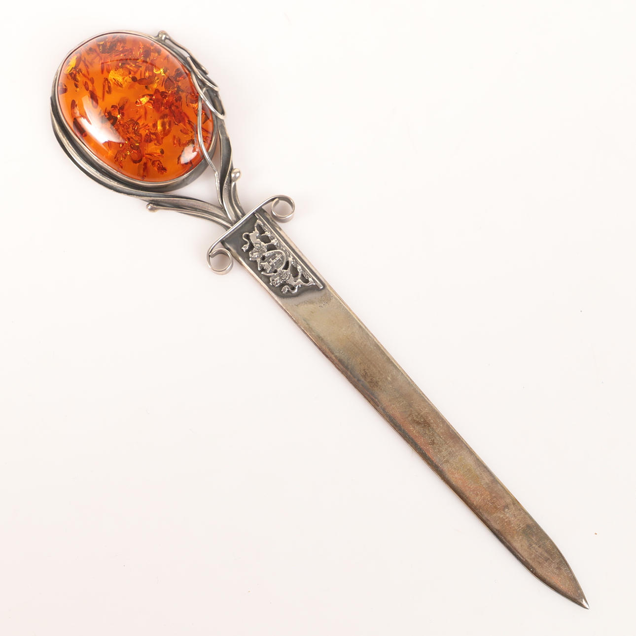 4355160. PAPIRKNIV, sterlingsølv/rav, Millenium Gallery Gdańsk, Polen.