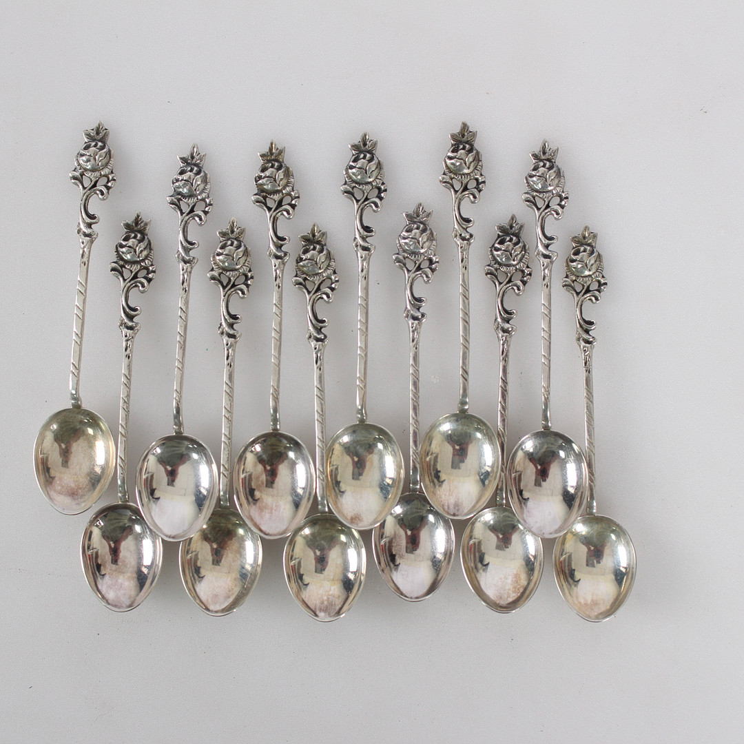 4356414. 12 stk ruskindskeer, sølv, Gewe, Malmö,1963, 72 gr.