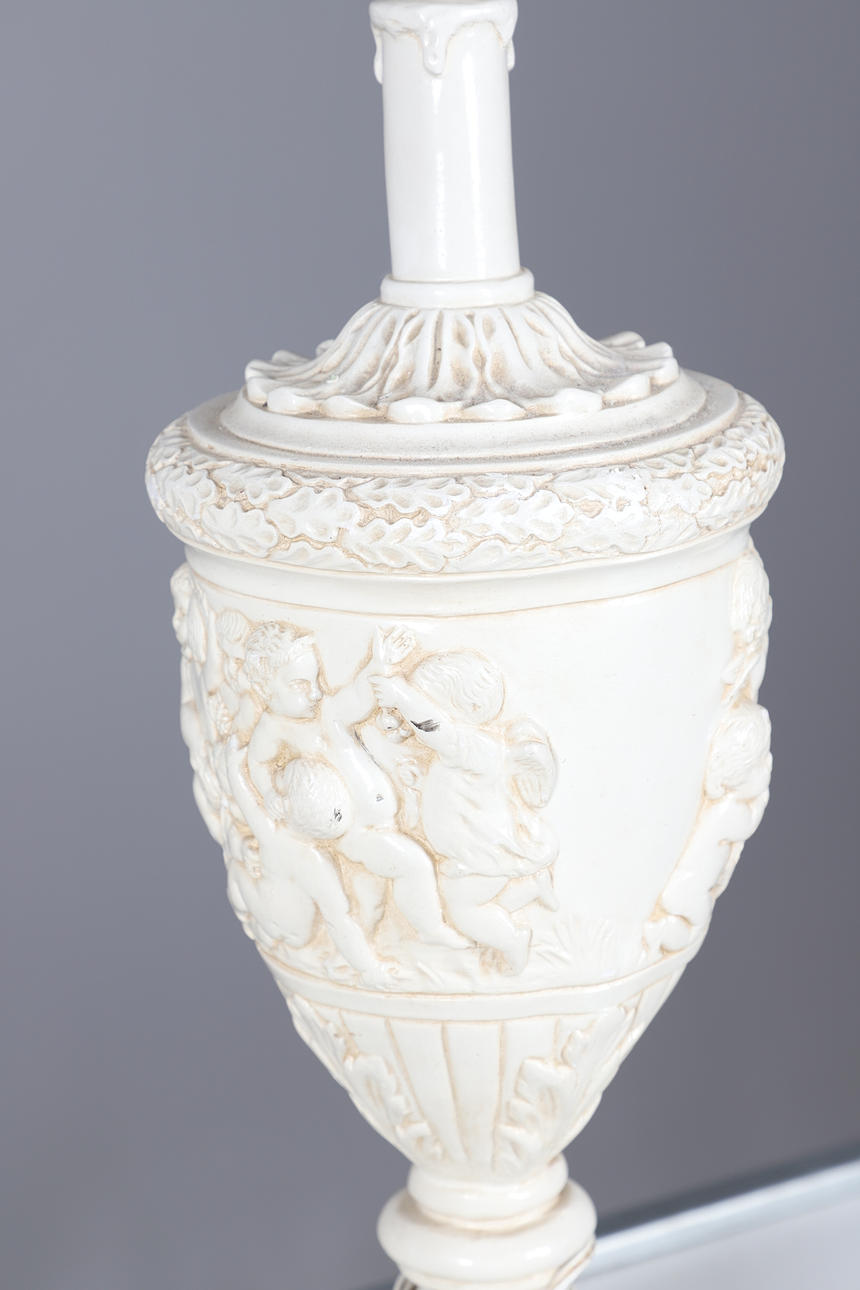 På ottekantede baser, dekoreret med blad- og kerubdesign i relief. Samlet højde 71cm. (2).