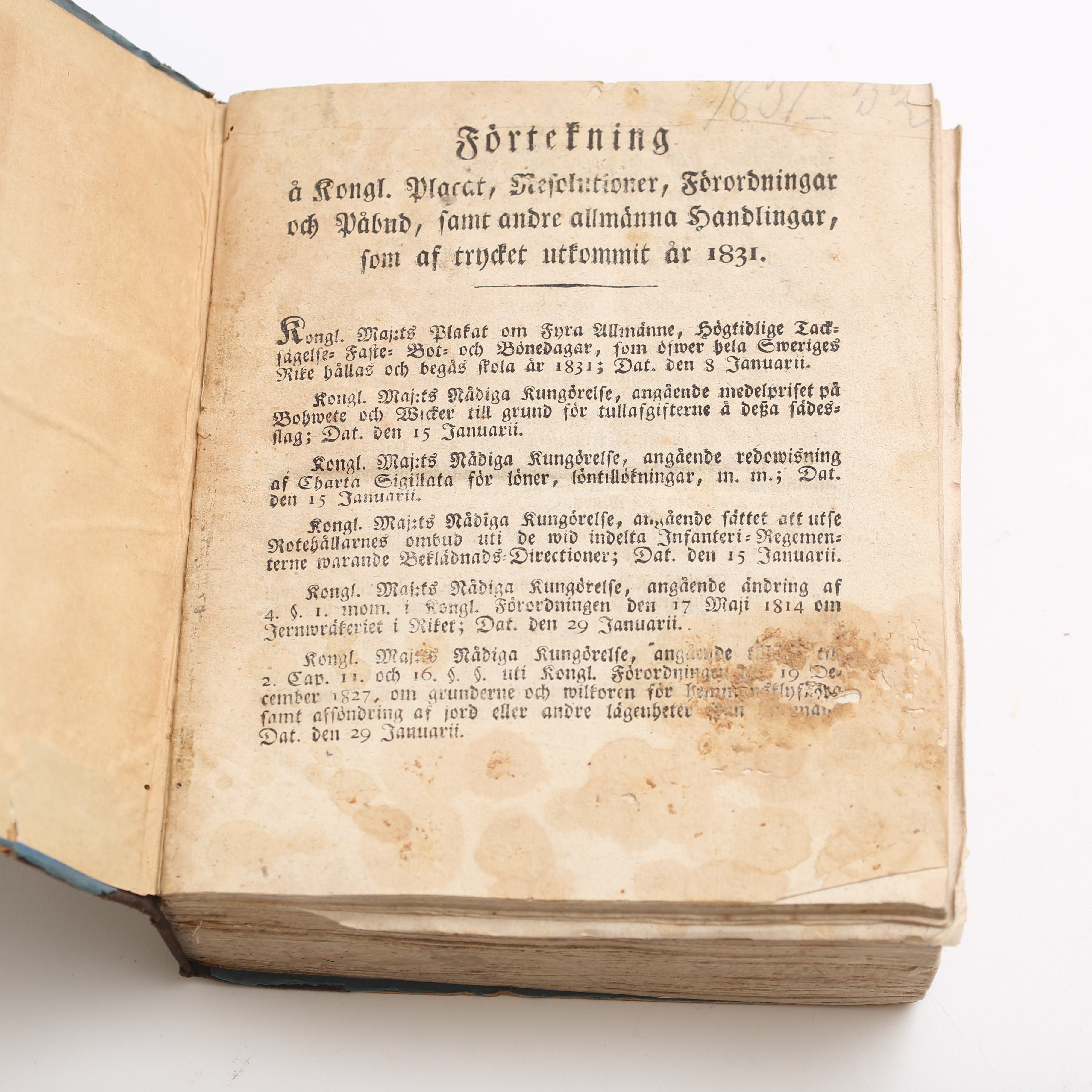 4357569. PROKLAMATIONER, bogbundet, 1831.