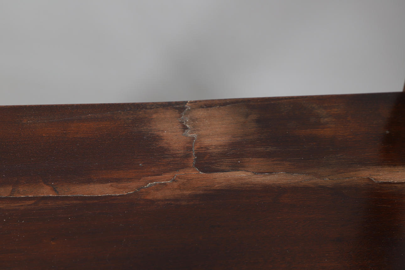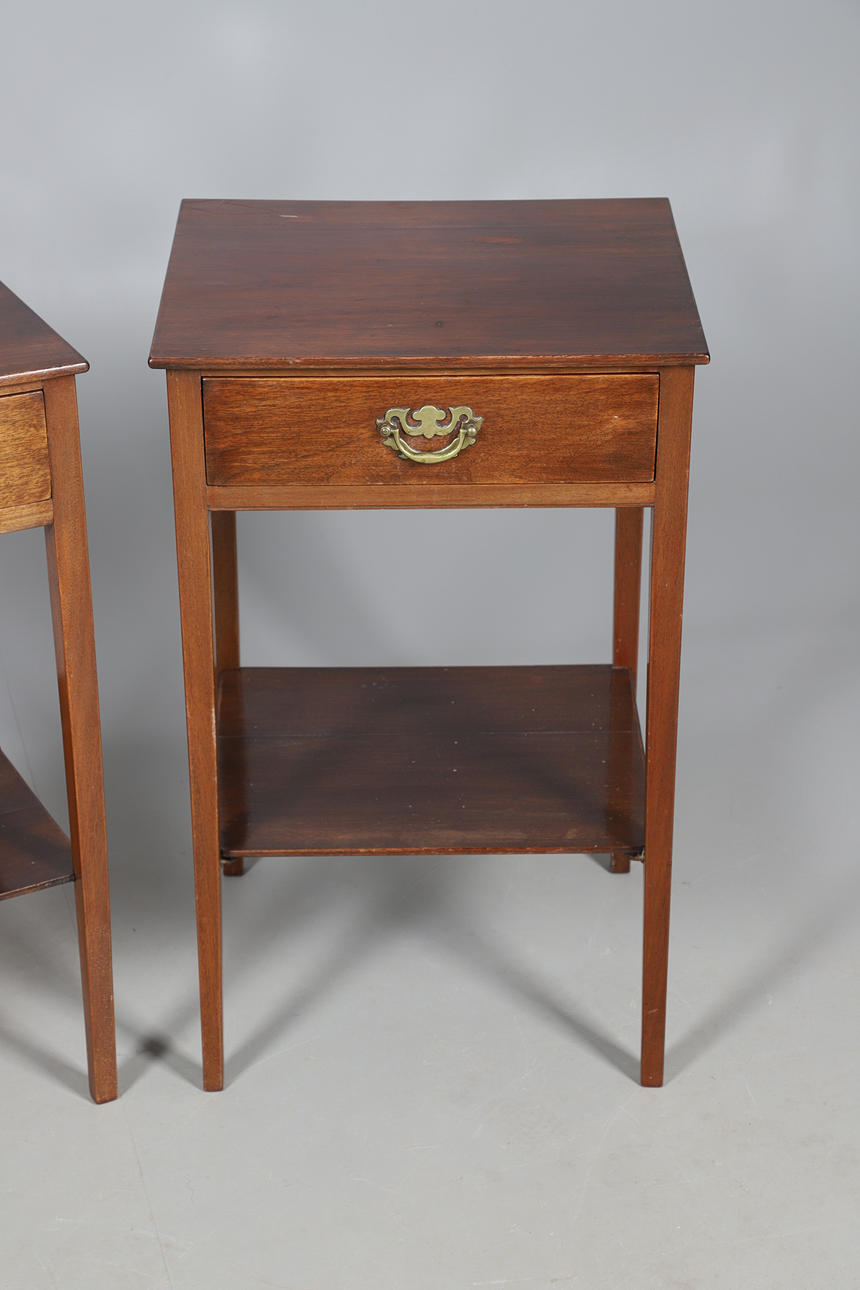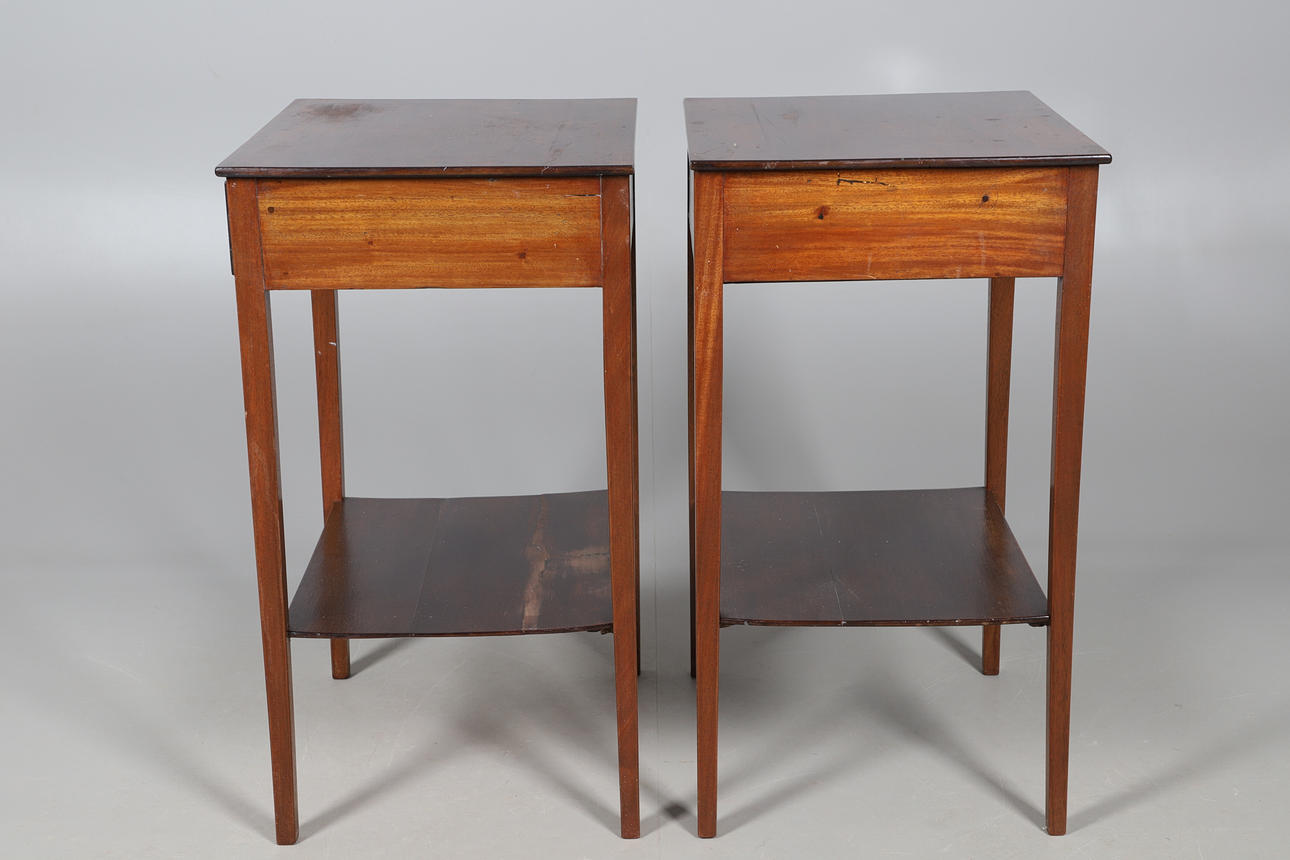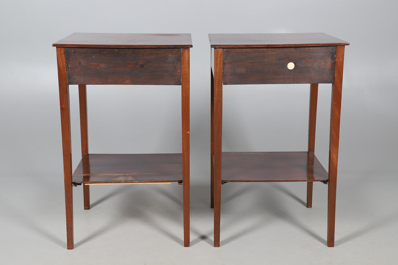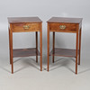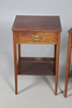 Toppen med enkelt friseskuffe med messinghåndtag, på slanke koniske ben, forenet af et underlag. Højde 74.5cm x Bredde 46cm x Dybde 41cm. (2).