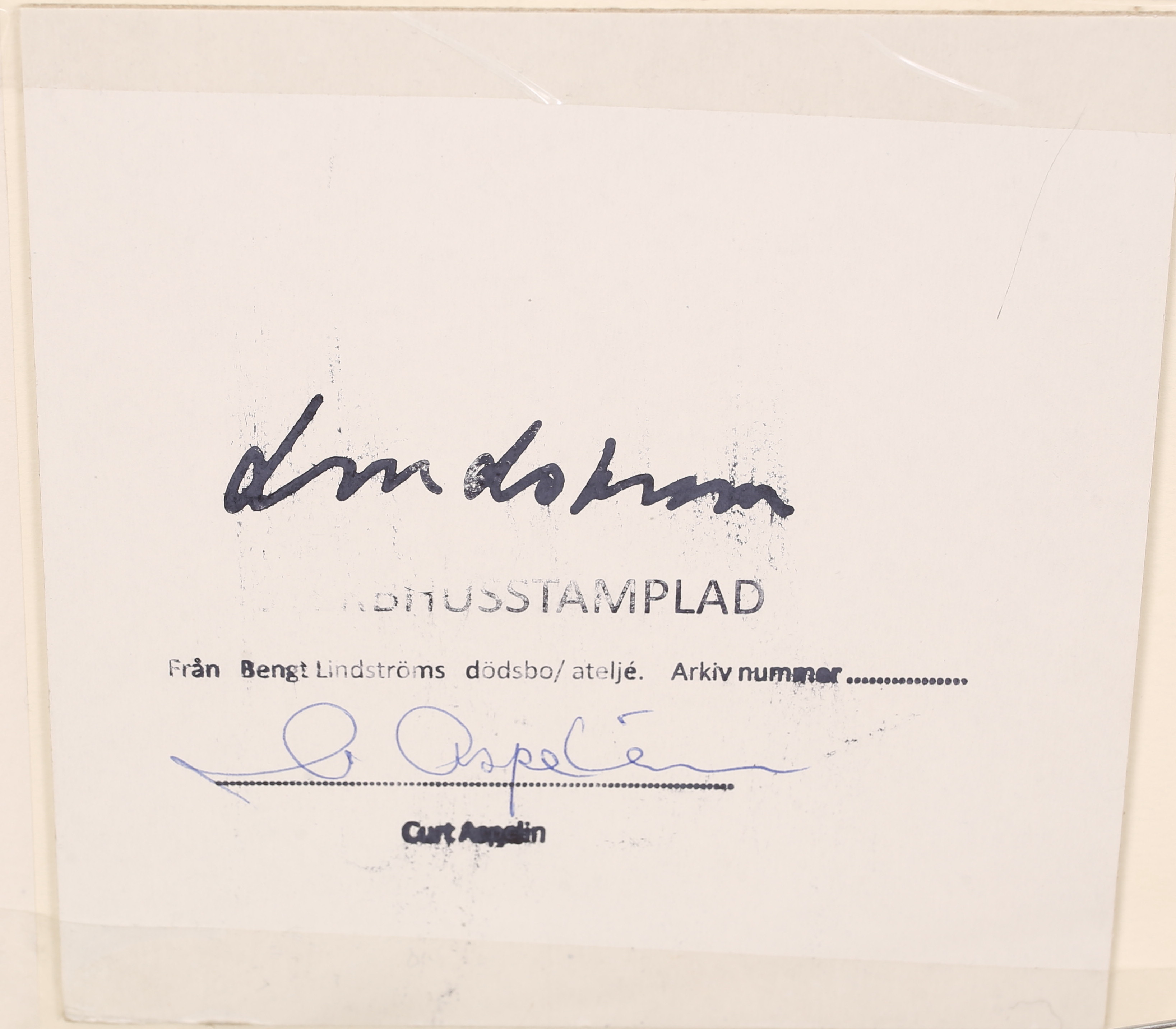 4357964. BENGT LINDSTRÖM. Farvelitografi, sterbhusstemplet, EA.
