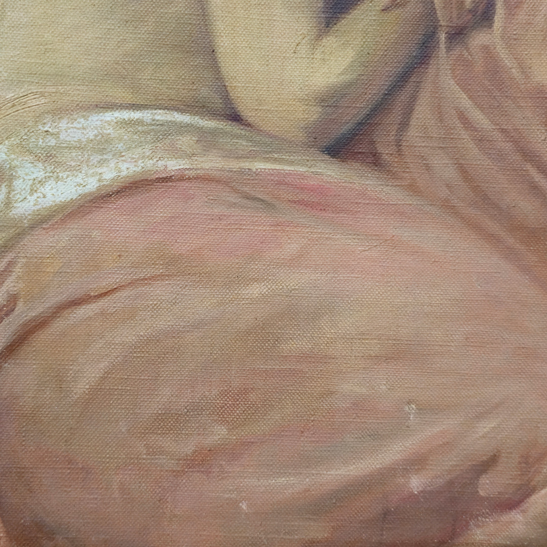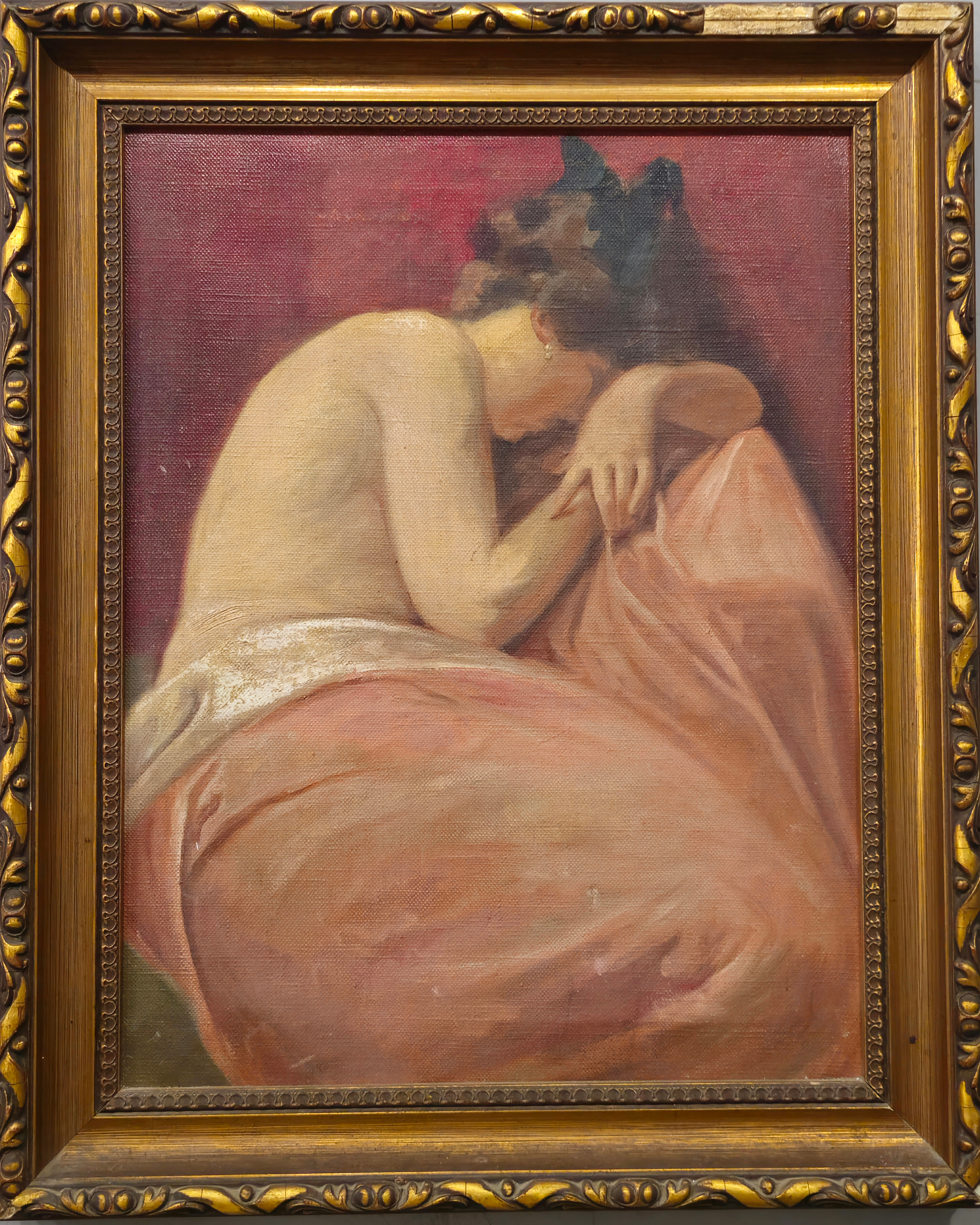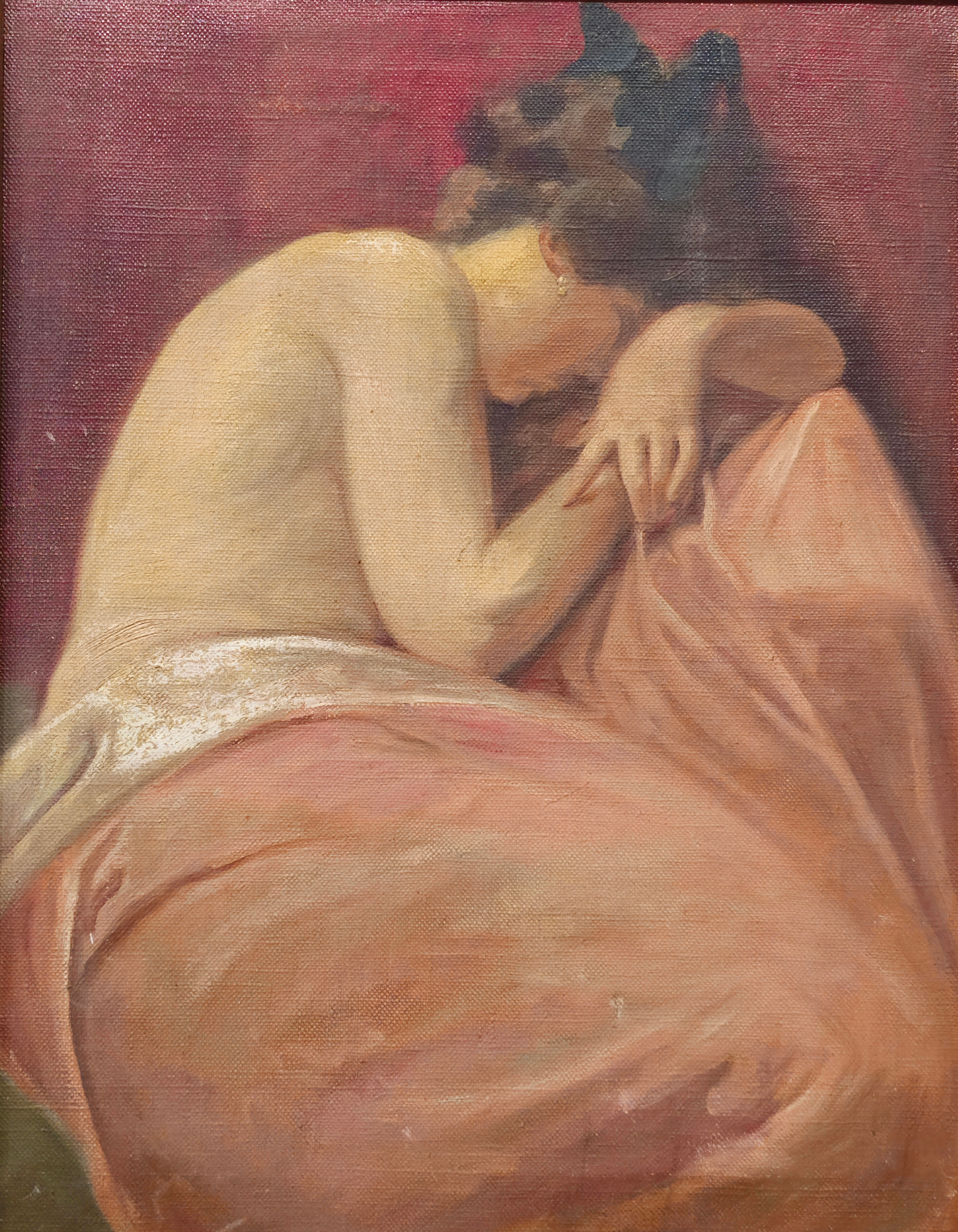 4359724. SOVENDE PIGE. OLIE PÅ LÆRRED. ANONYM.