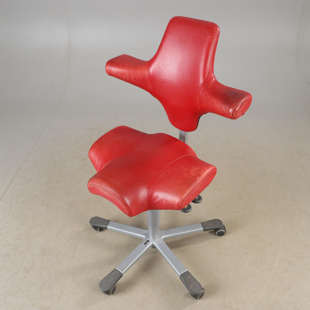 4360306. KONTORSTOL, læderbetræk, HÅG Capisco.