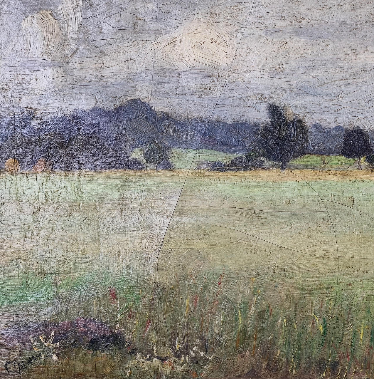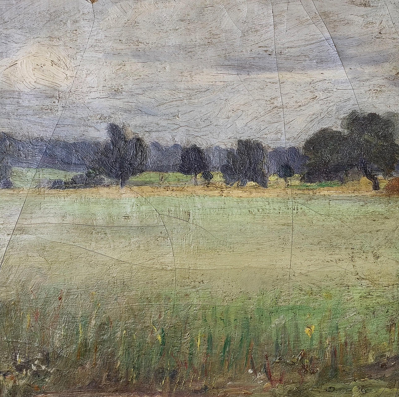 Knakket og defekt maling. Ikke undersøgt uden ramme.