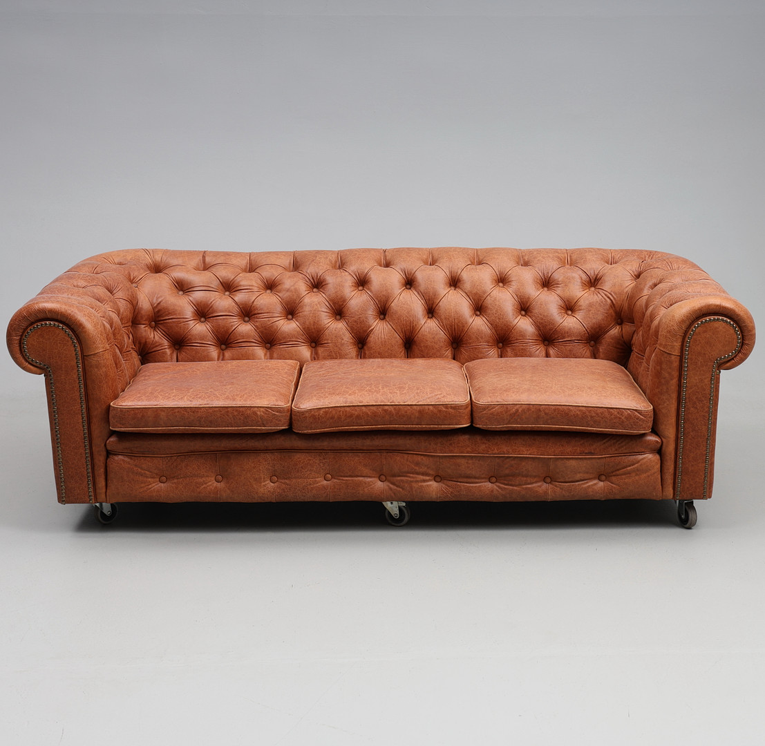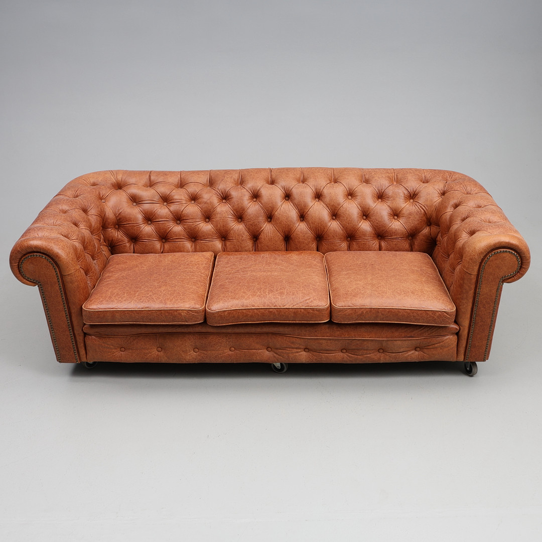 4360570. 3-PERSONERS SOFA, læder, Chesterfield.