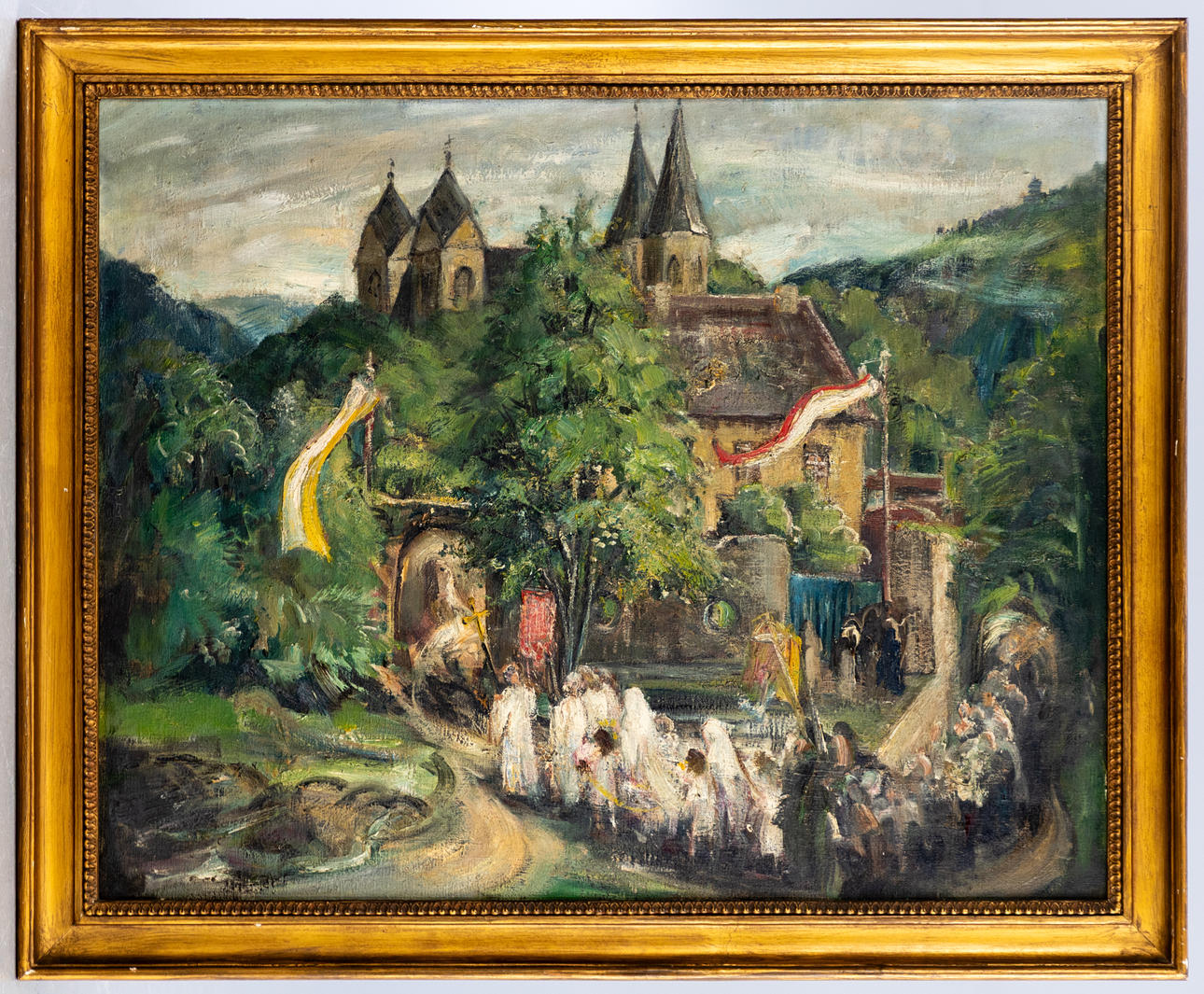 Leo Nyssen (1897-1945), Christian Procession, olie på lærred, ca. 60 x 75 cm, med ramme ca. 70 x 85 cm