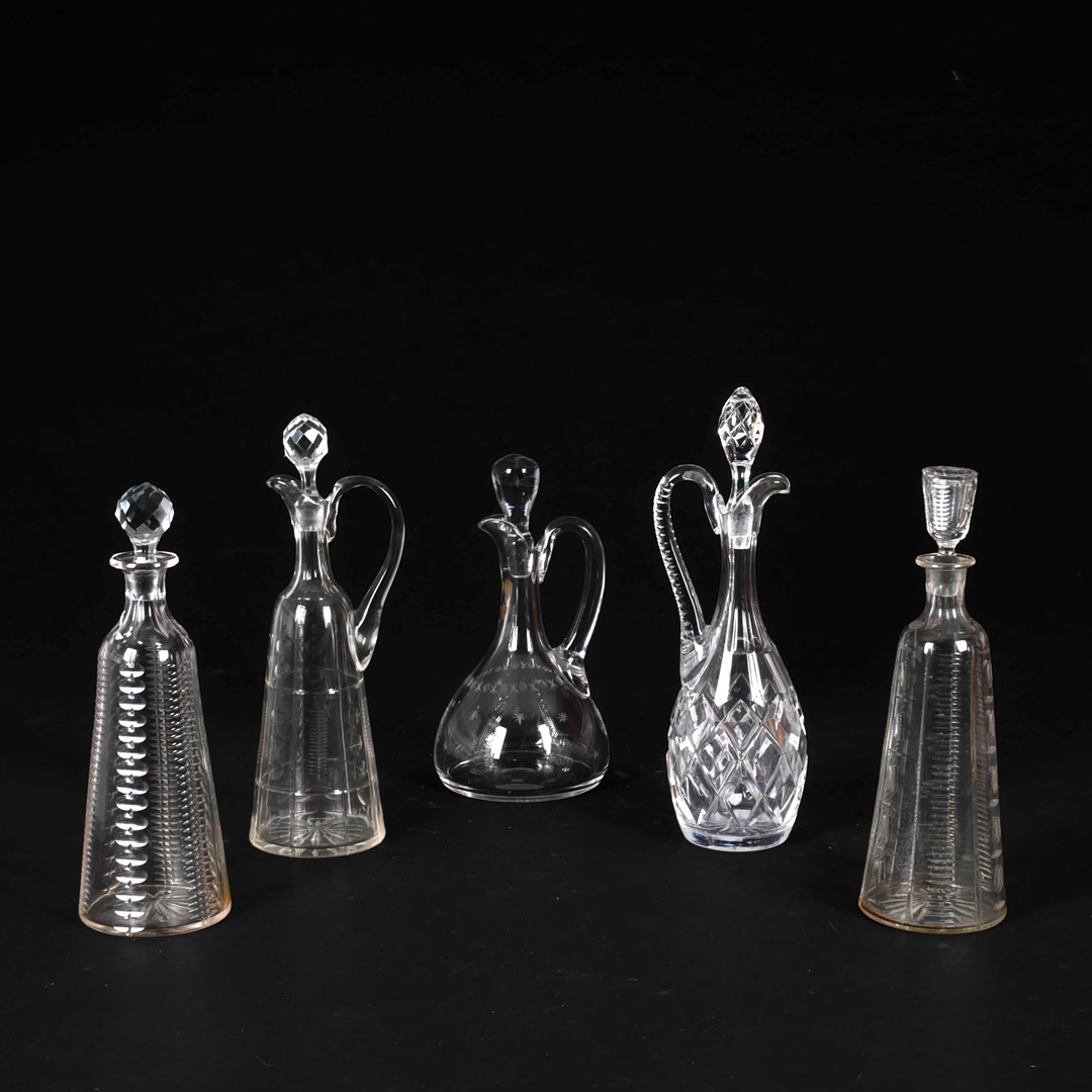 4361712. KARAFLER, 5 stk., glas, 18./20. århundrede.