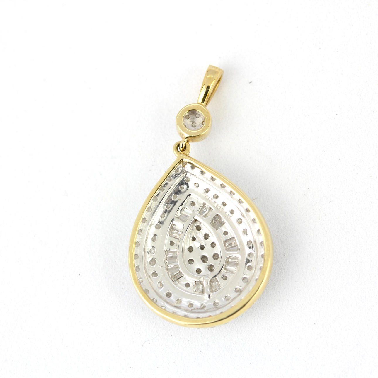 Et stemplet 9 karat gult og hvidguld diamantsæt dråbevedhæng, L.